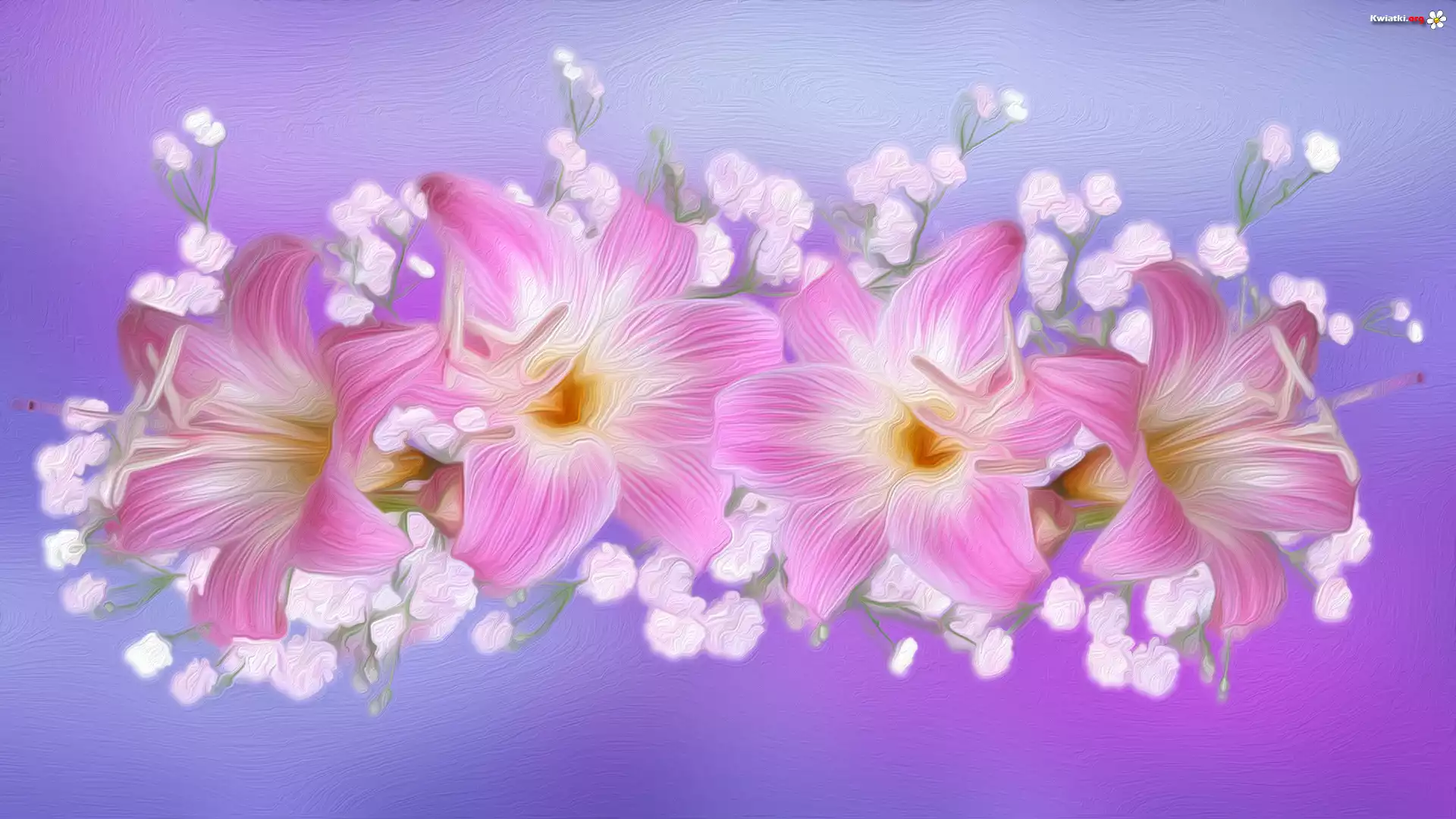 Różowe, Kwiaty, Lilie, Grafika - Zdjęcia