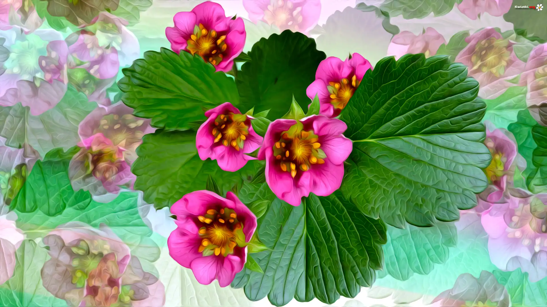Różowe, Kwiaty, Liście, Grafika - Zdjęcia