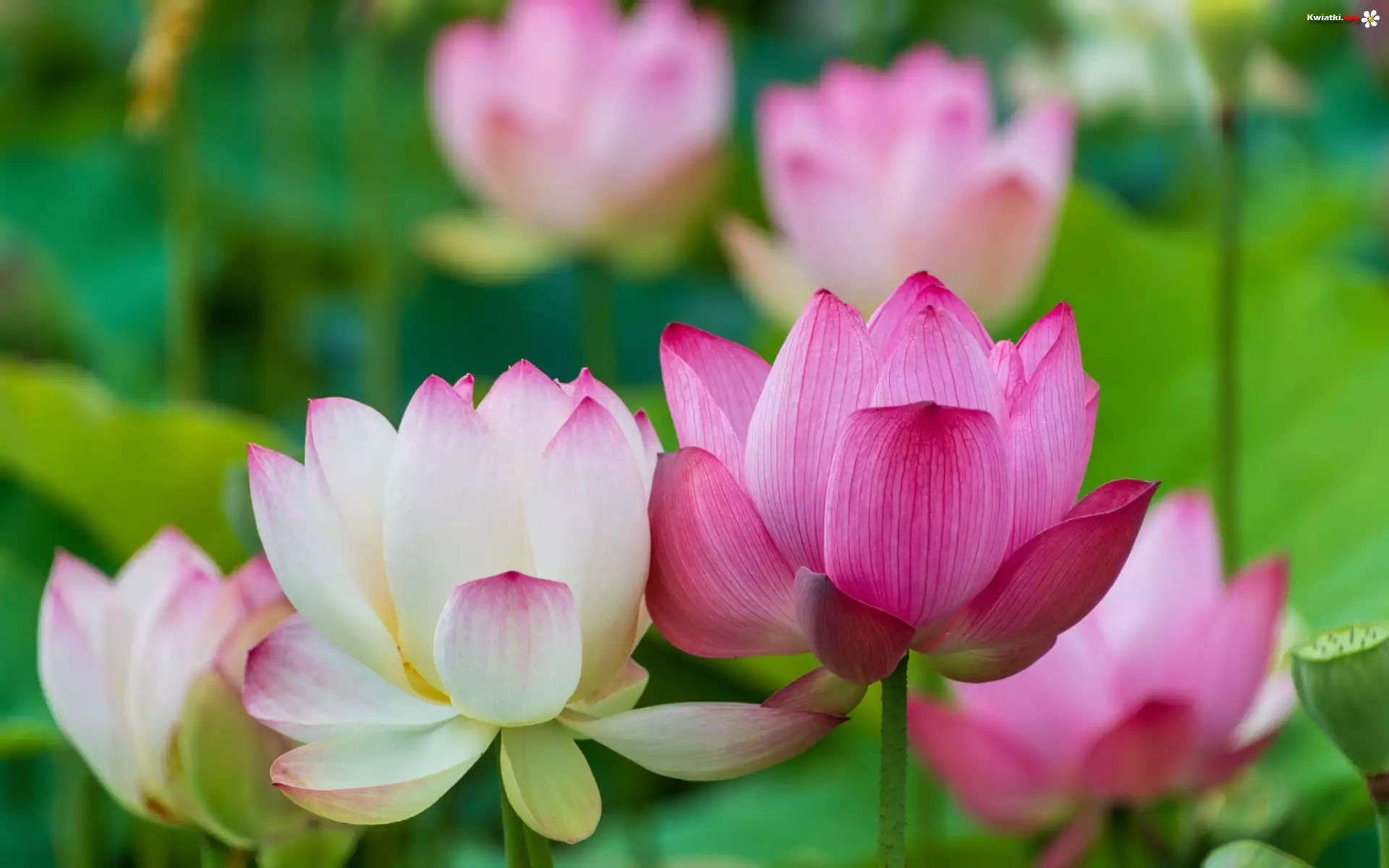 Kwiat Lotosy, Kwiaty, Białe, Różowe