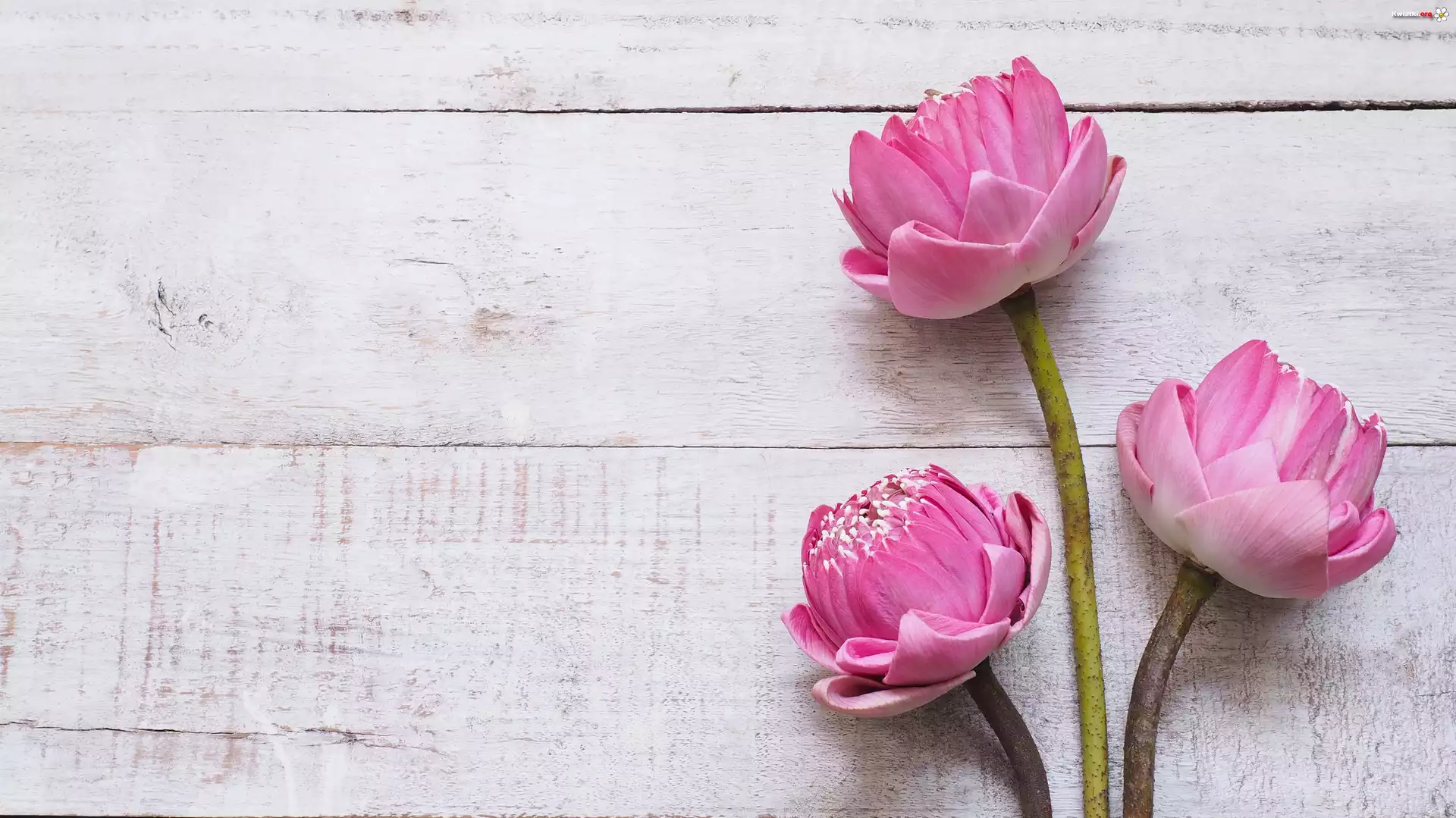 Różowe, Kwiaty, Trzy, Lotosy, Deski - Zdjęcia