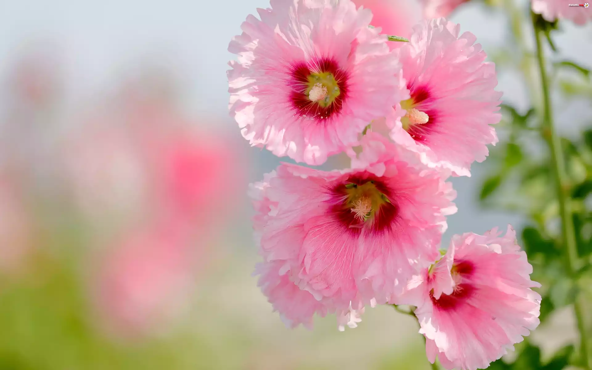 Różowe, Kwiaty, Malwa, Liście - Zdjęcia