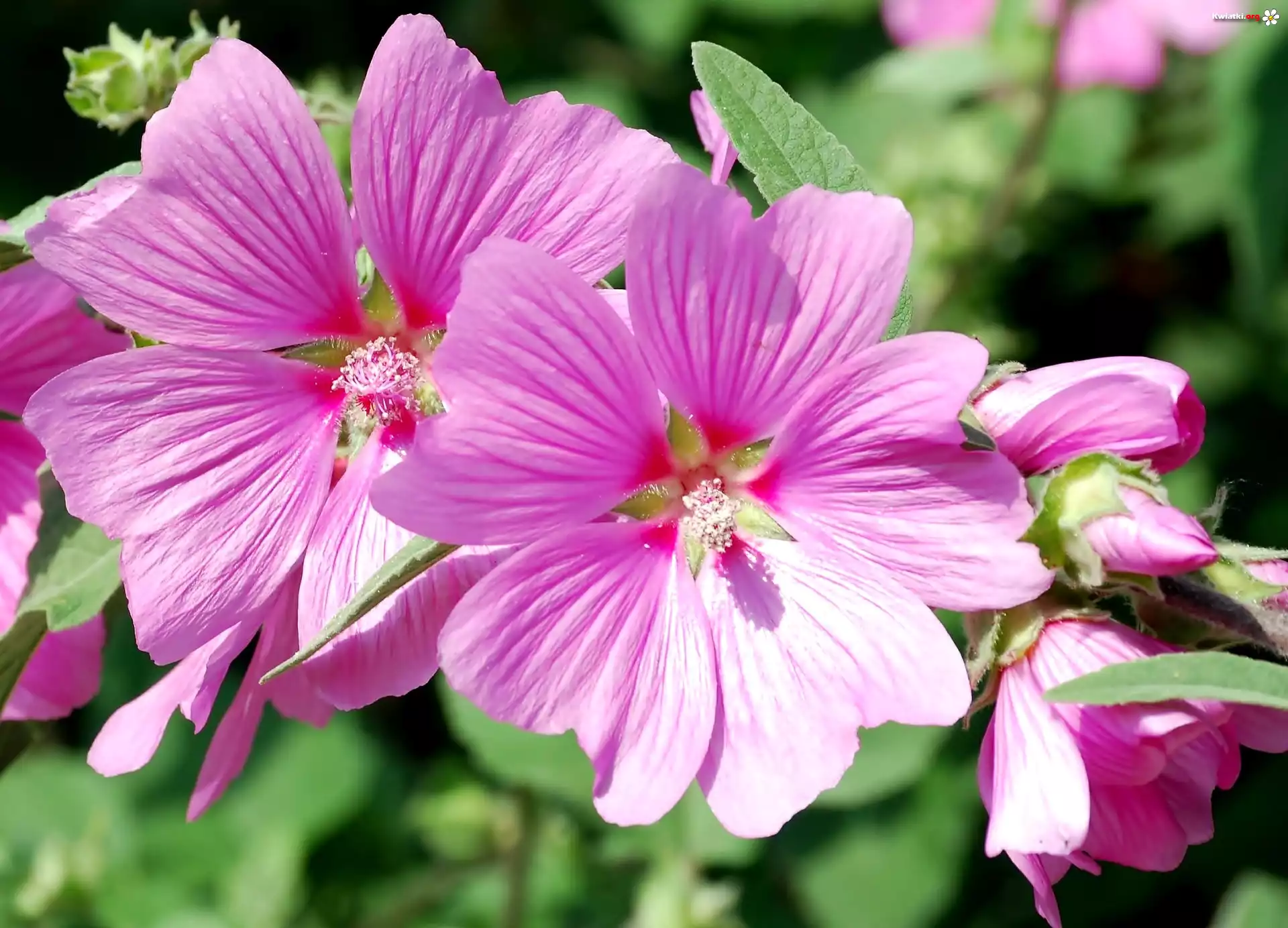 Różowe, Kwiaty, Ślazówka - Zdjęcia