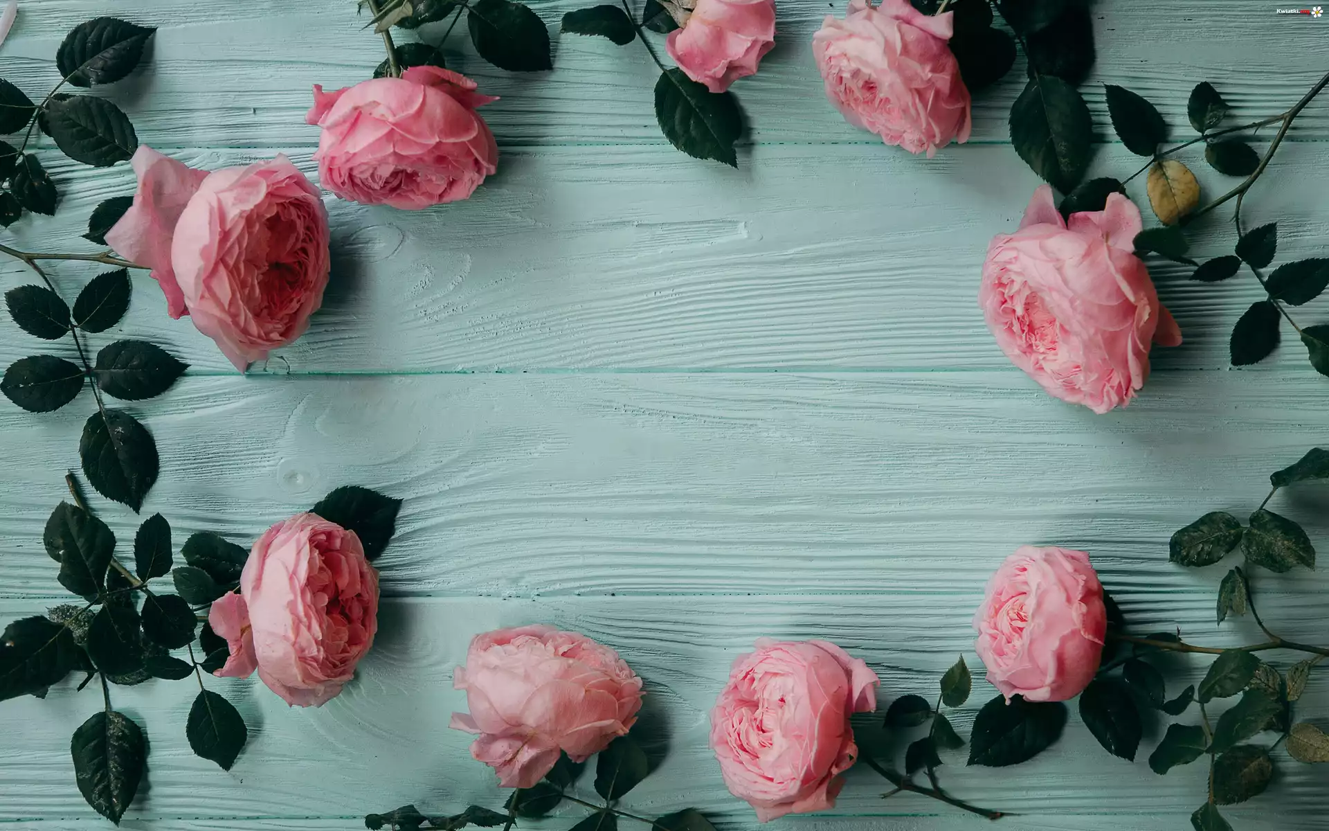 Różowe, Róże, Okrąg, Deski - Zdjęcia