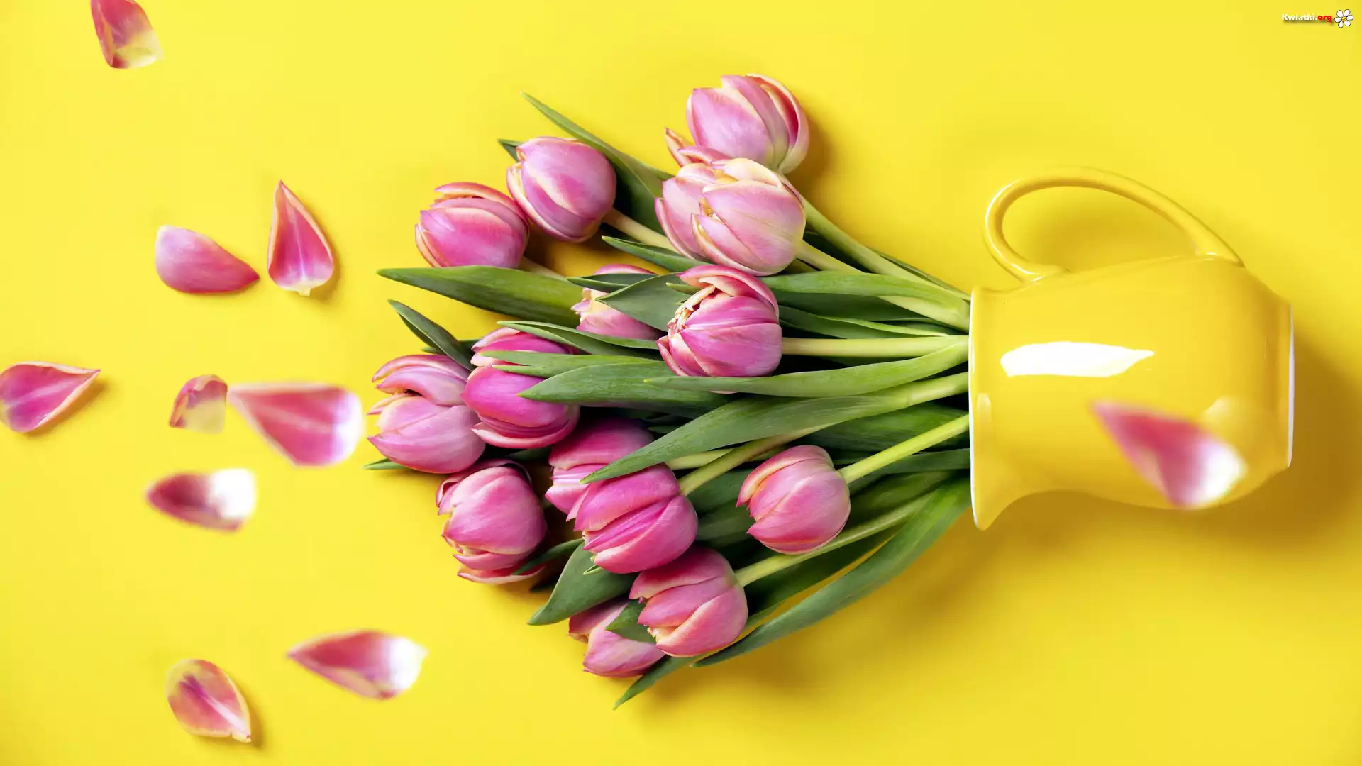 Kwiat Różowe, Tulipany, Żółty, Dzbanek