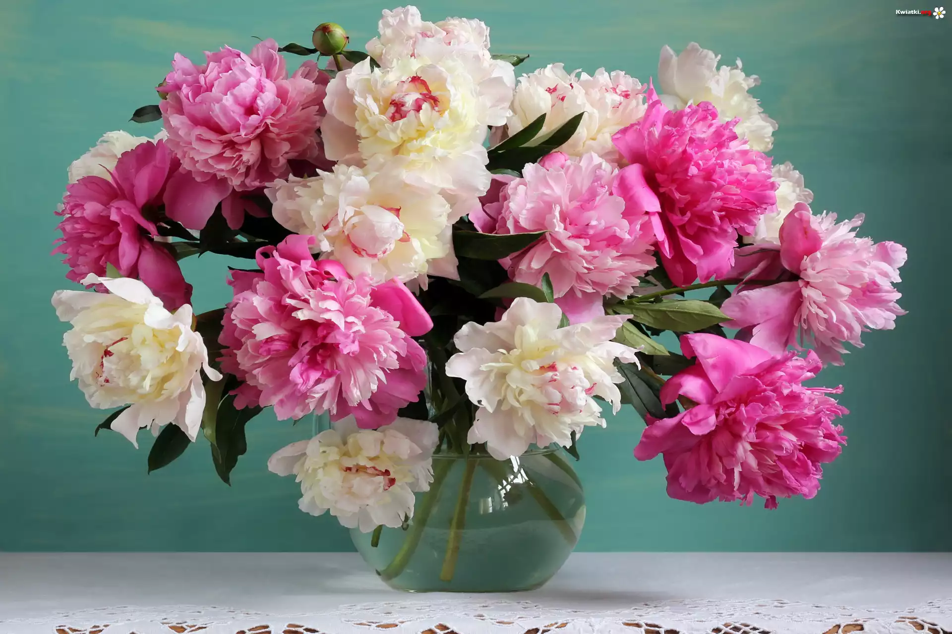 Różowe, Białe, Piwonie, Bukiet - Zdjęcia