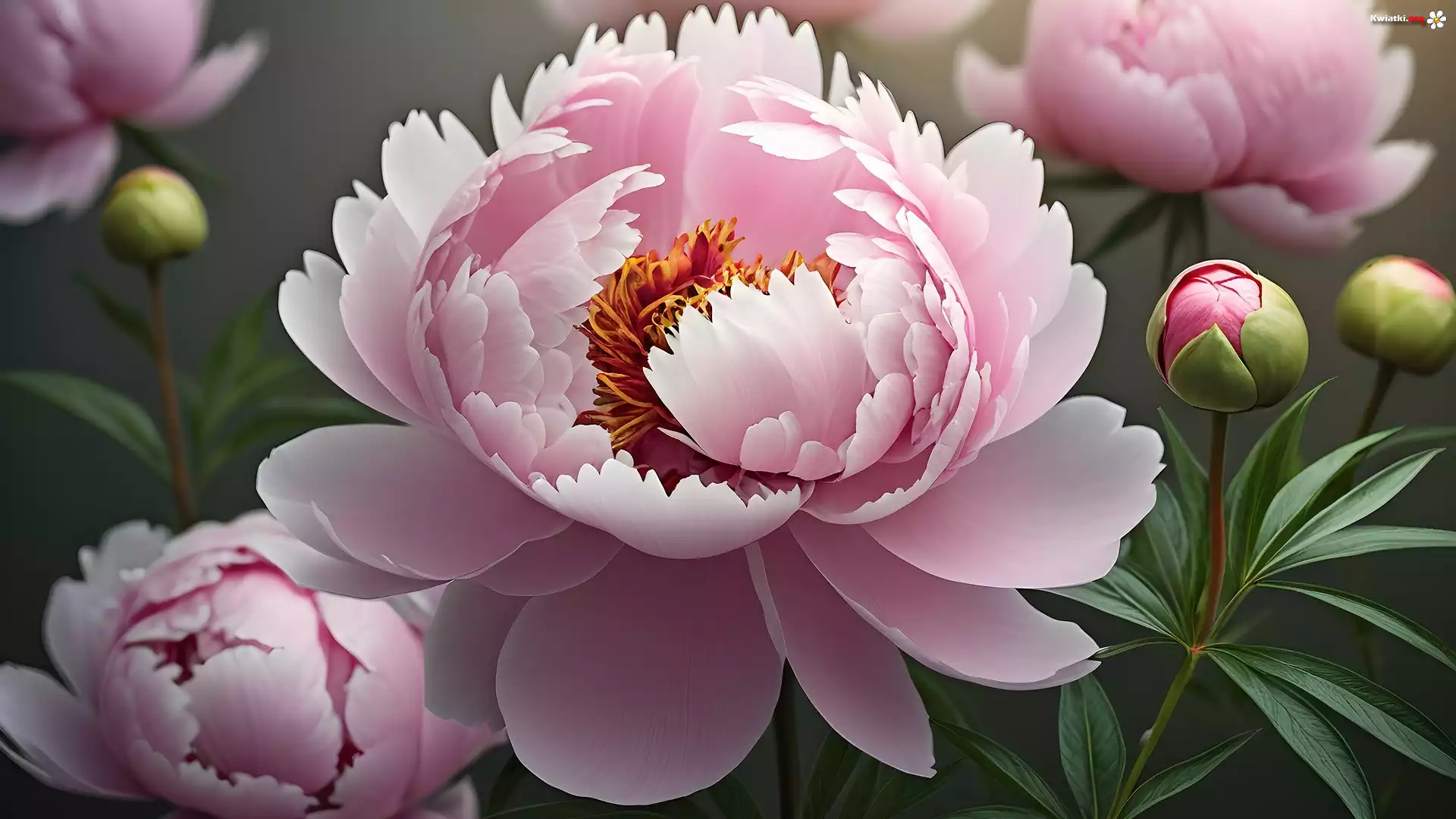 Kwiat Kwiaty, Różowe, Piwonie, Pąki, Grafika
