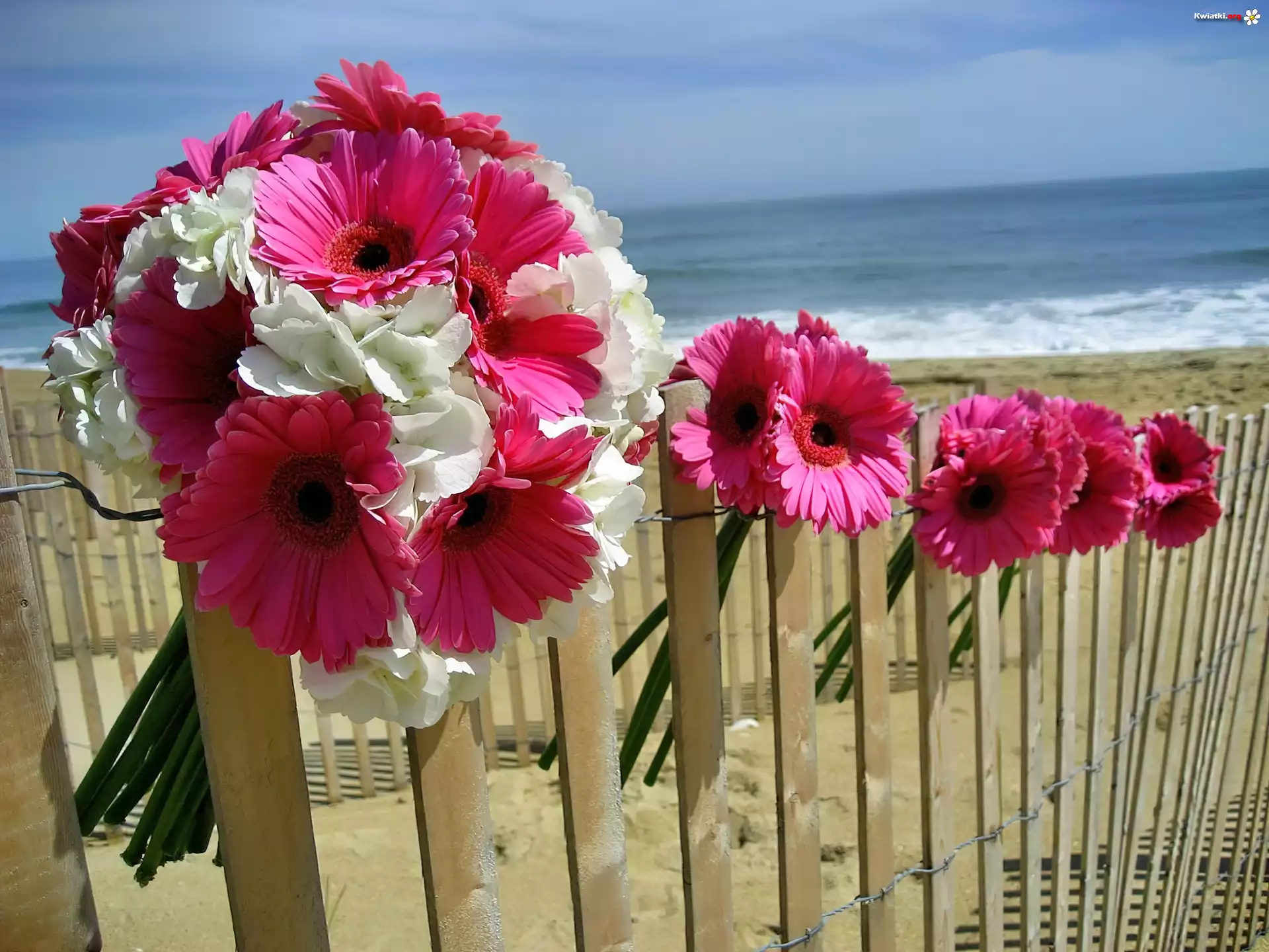 Kwiat Różowe, Gerbery, Plaża, Morze