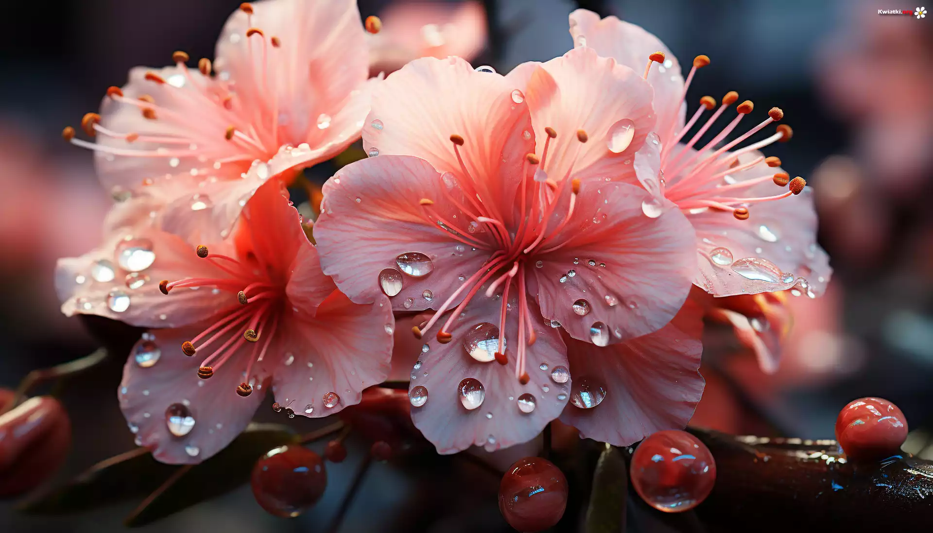 Kwiaty, Różowe, Pręciki, Płatki, Krople - Zdjęcia