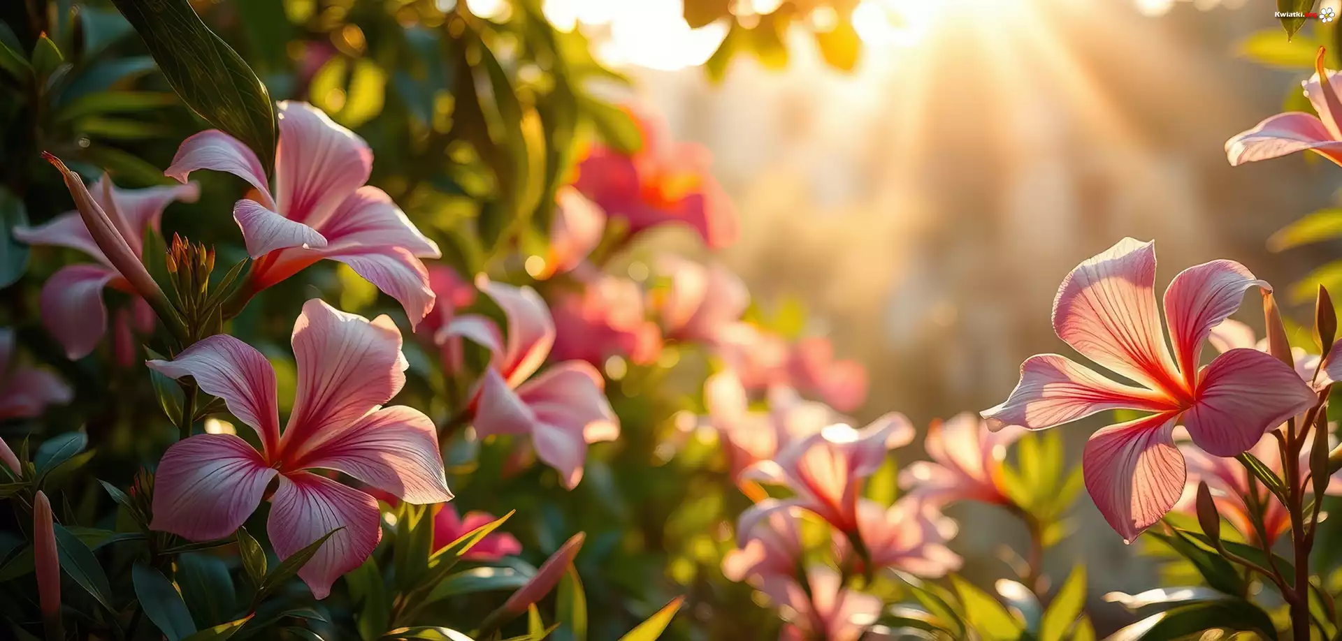Kwiaty, Różowe, Promienie słońca, Grafika - Zdjęcia