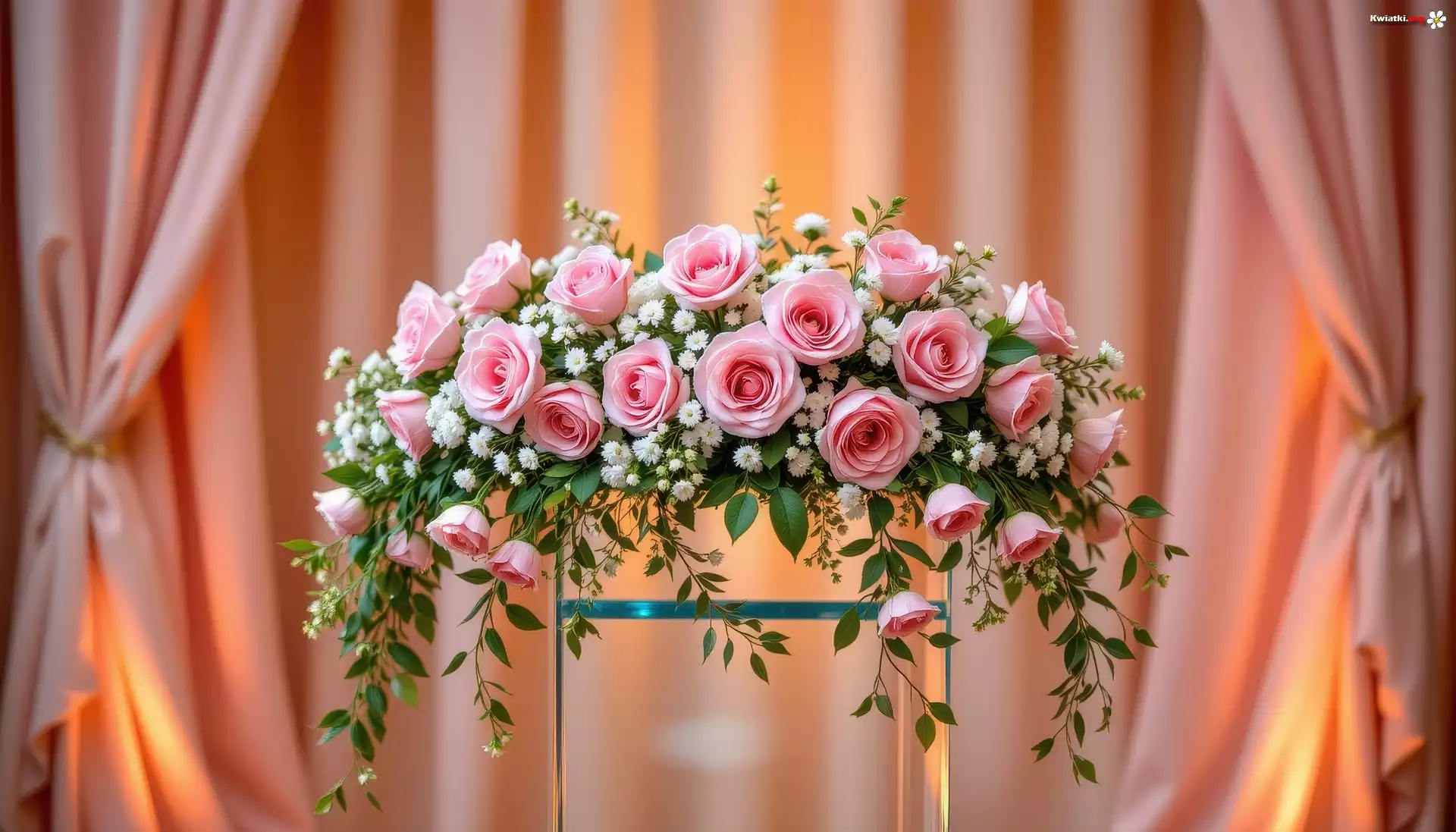 Kwiat Kwiaty, Różowe, Róże, Zasłony, AI