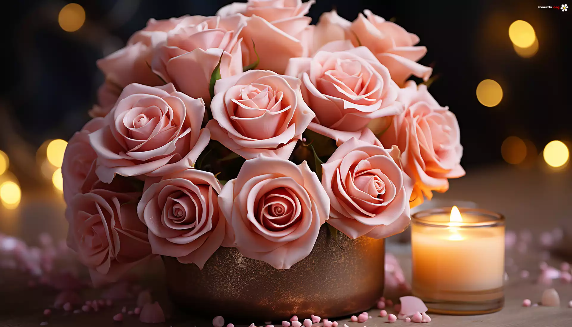 Bukiet, Różowe, Róże, Wazon, Świeczka - Zdjęcia