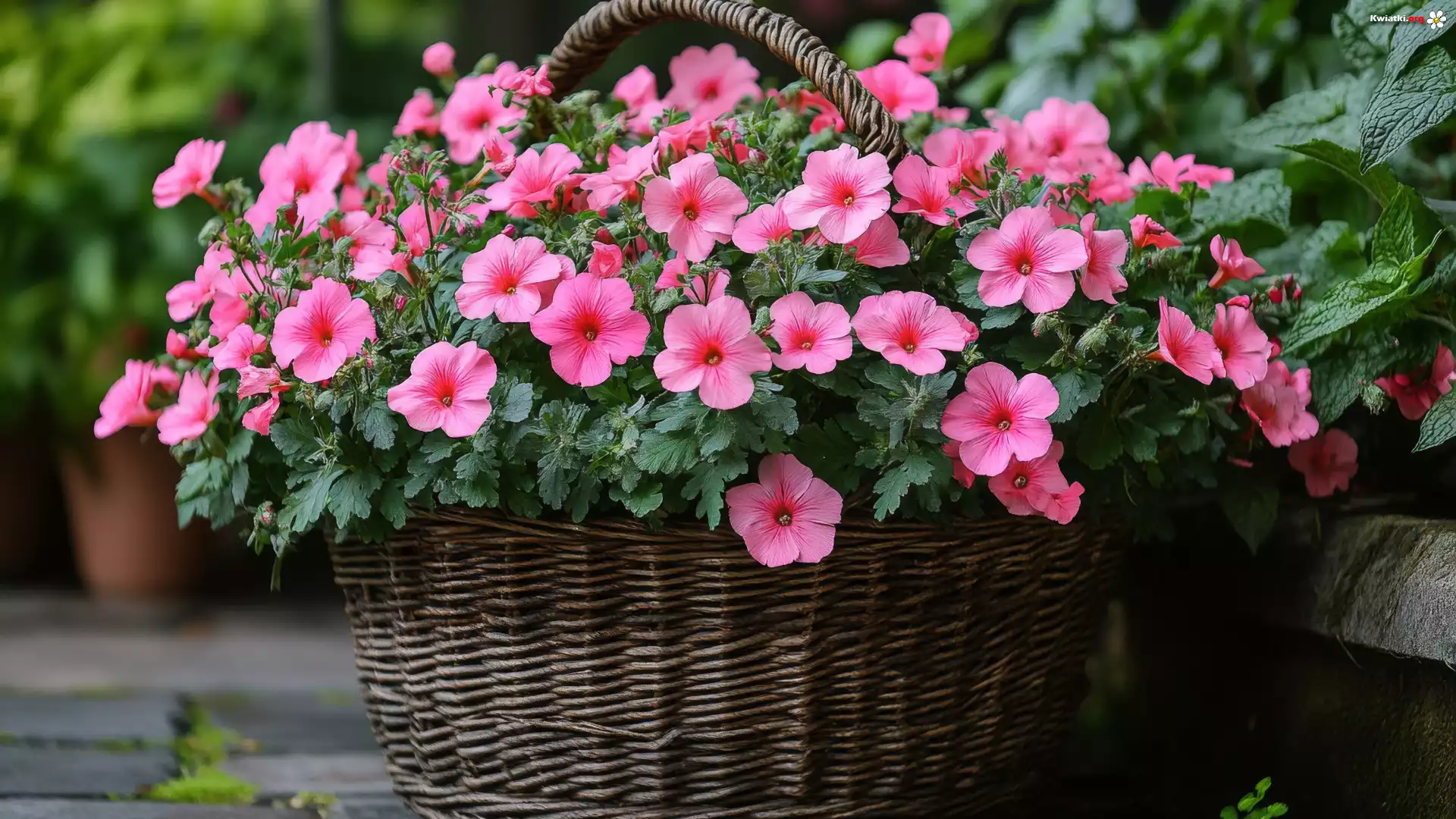 Kwiaty, Różowe, Rozkwitnięte, Petunie, Koszyk - Zdjęcia