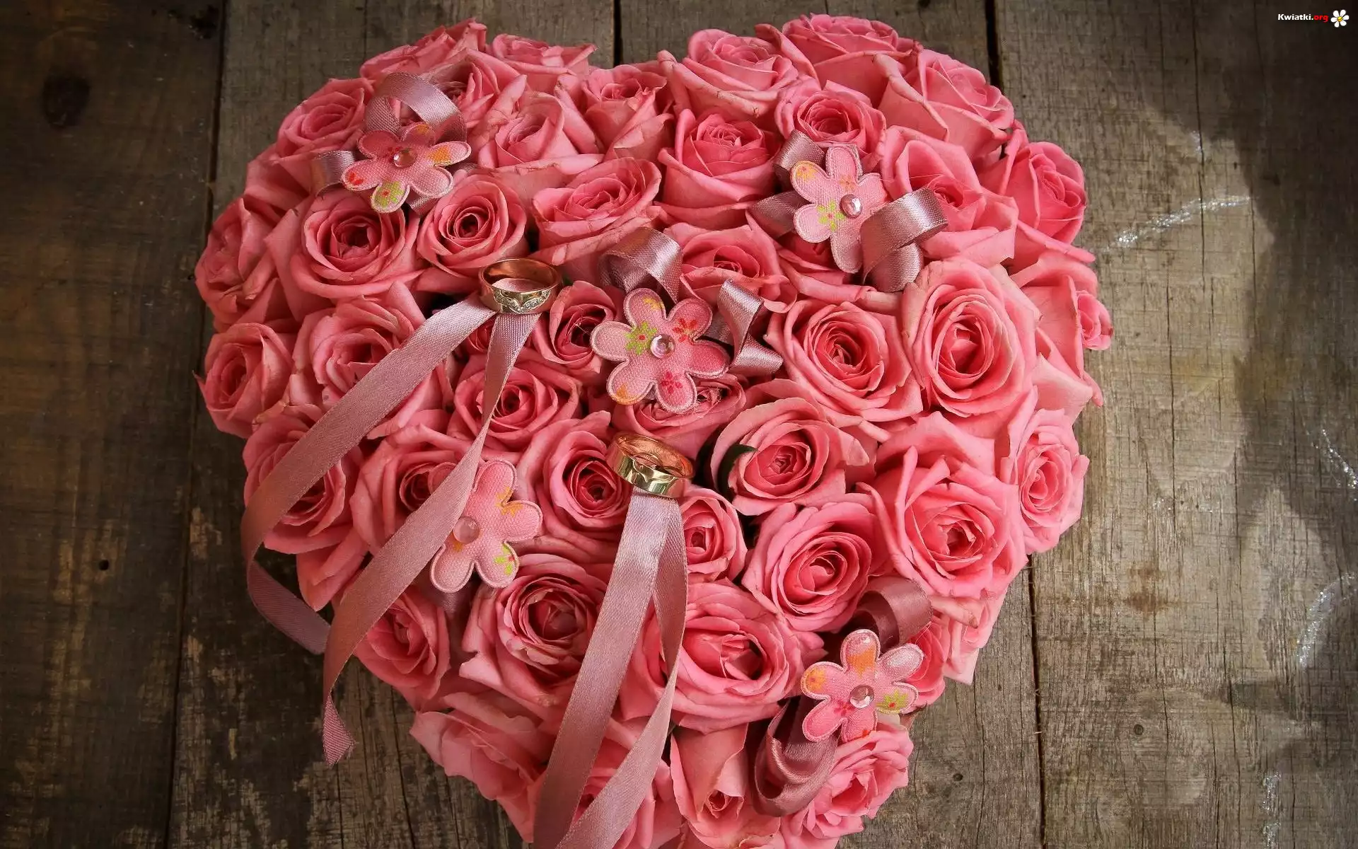 Kwiat Różowe, Róże, Serce, Wstążki