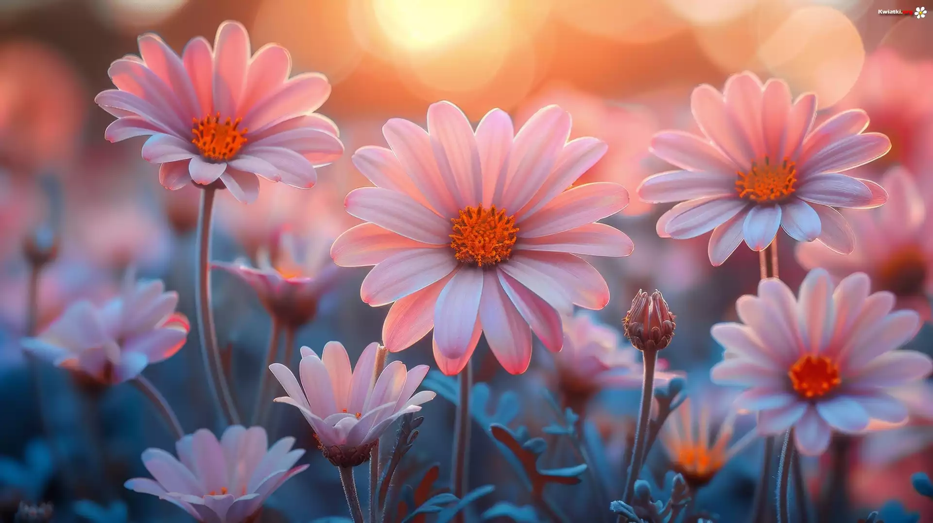 Kwiat Kwiaty, Różowe, Stokrotki afrykańskie, Blask