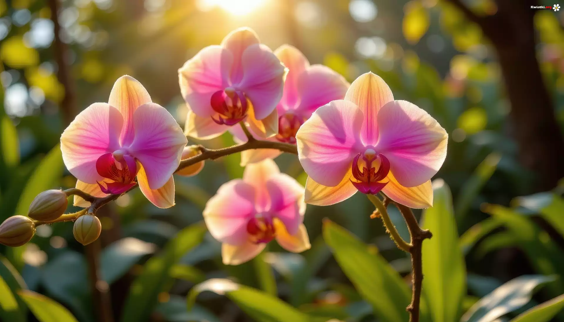 Kwiaty, Różowe, Storczyki, Rozświetlone, AI - Zdjęcia