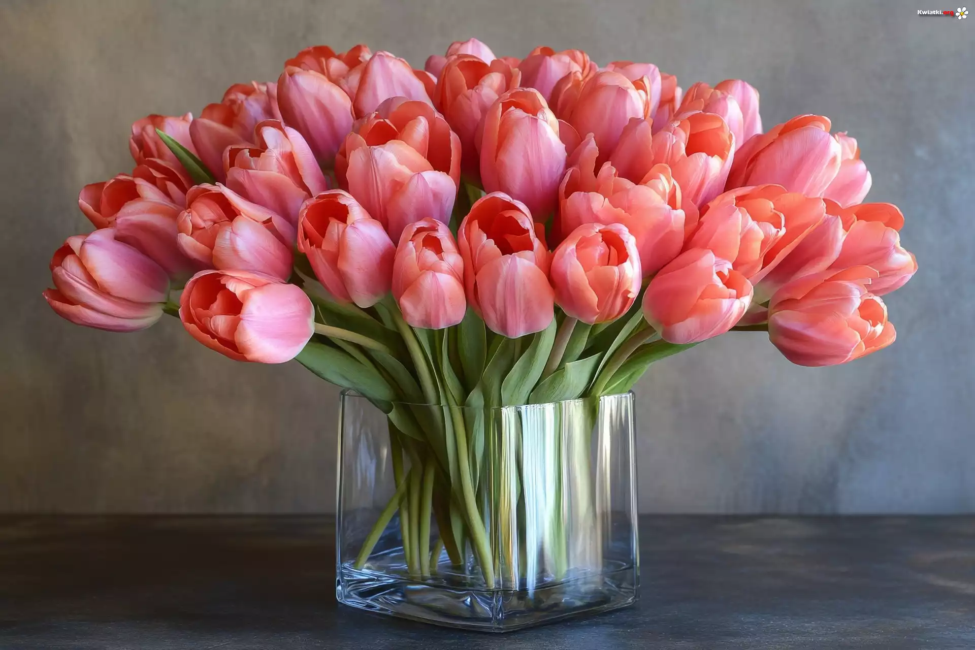 Bukiet, Różowe, Tulipany, Szklany, Wazon - Zdjęcia