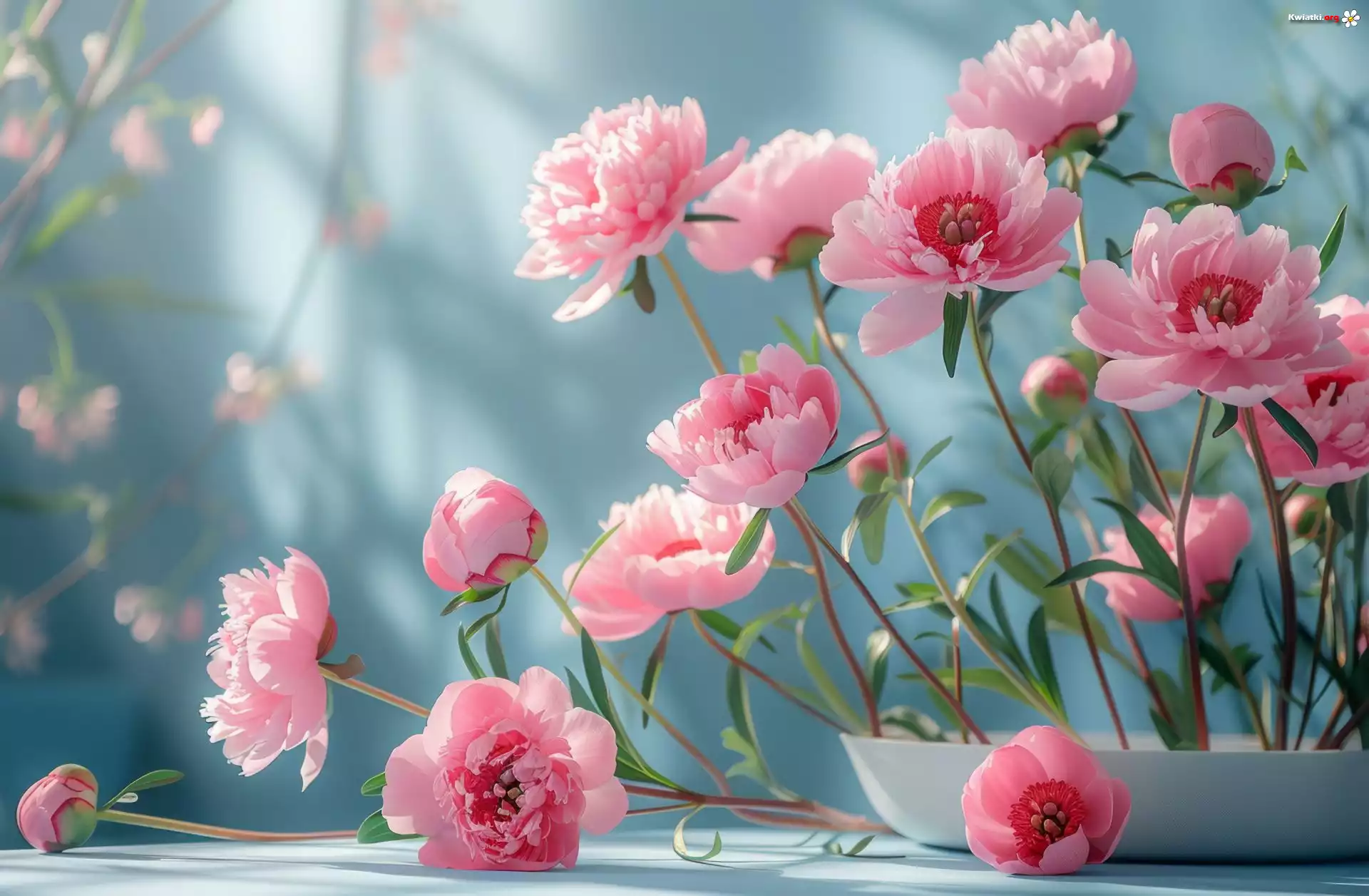 Kwiaty, Różowe, Waza, Tło, Niebieskie - Zdjęcia