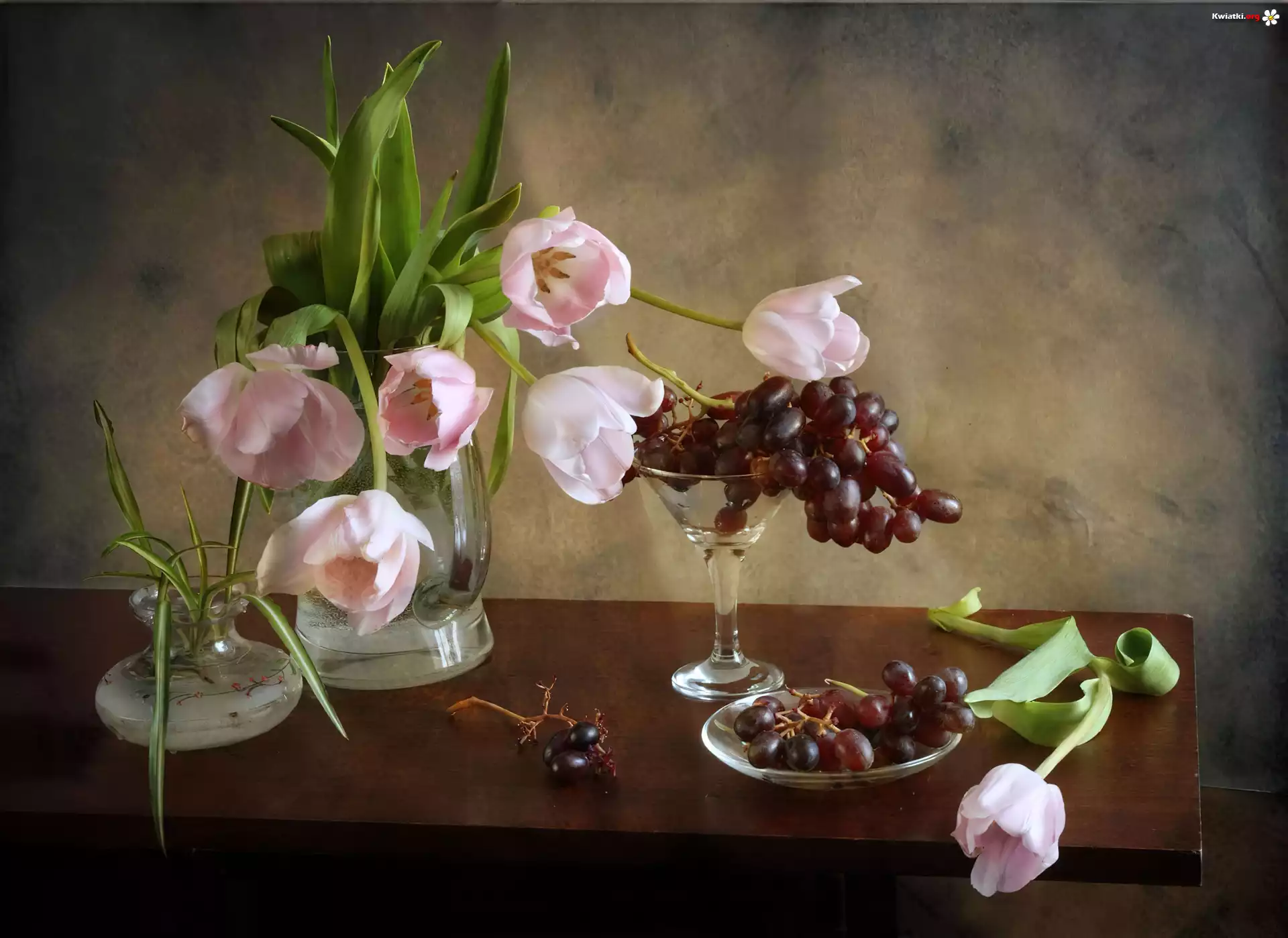 Różowe, Tulipany, Winogrona, Kompozycja - Zdjęcia
