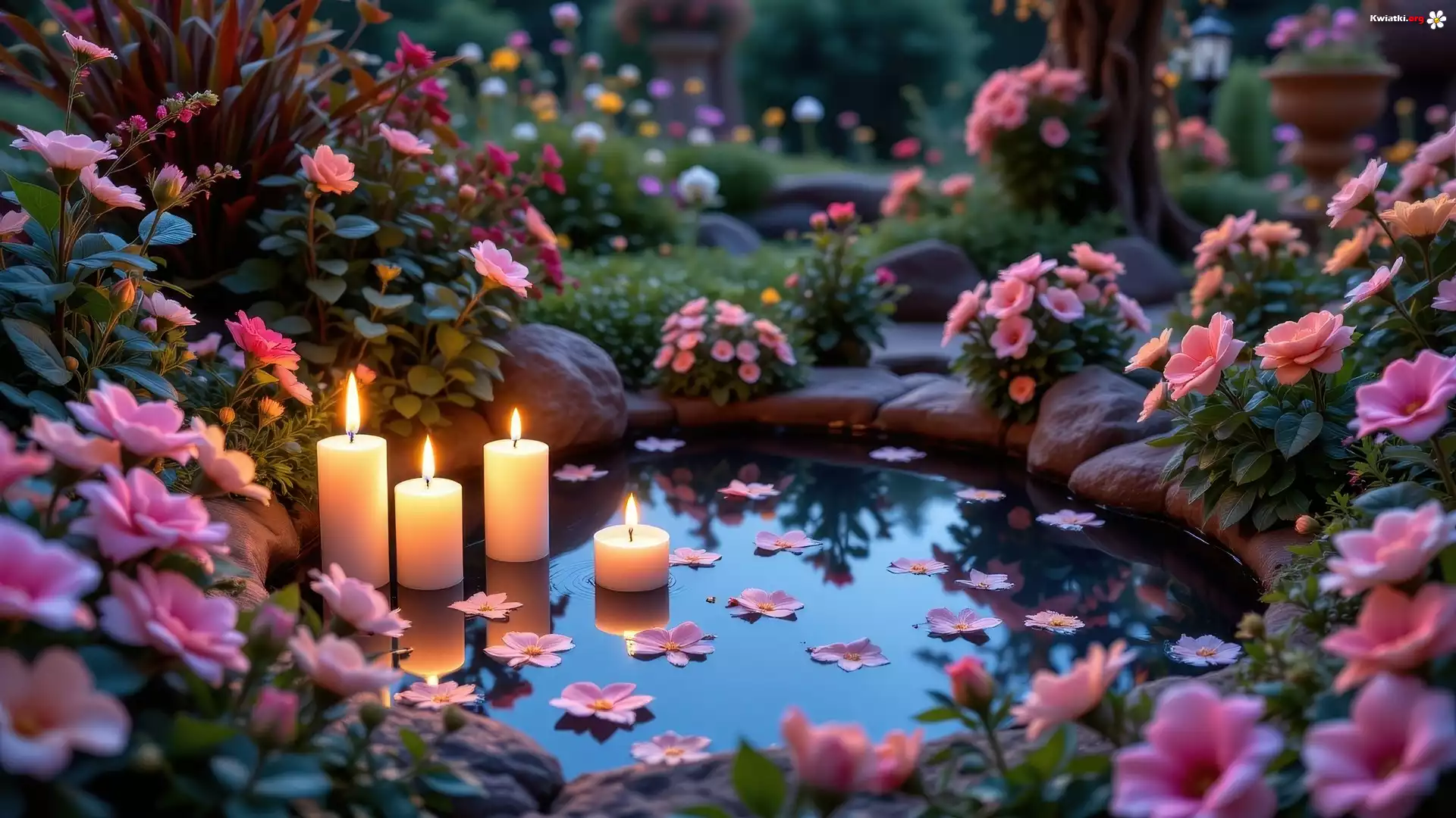 Kwiat Ogród, Oczko wodne, Różowe, Kwiaty, Płonące, Świece