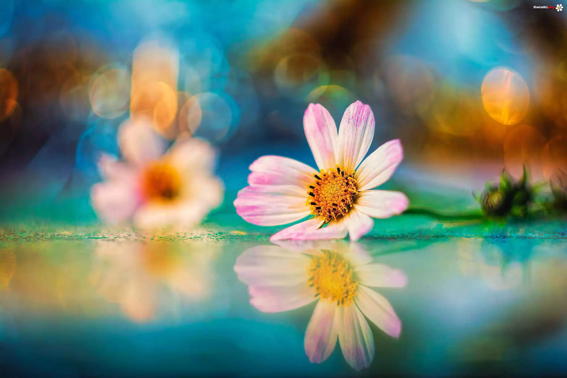 Kwiat Różowo-biały, Kwiat, Bokeh, Odbicie