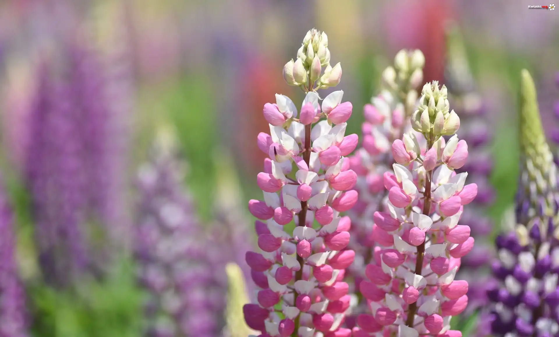 Różowo-białe, Kwiaty, Łubin - Zdjęcia