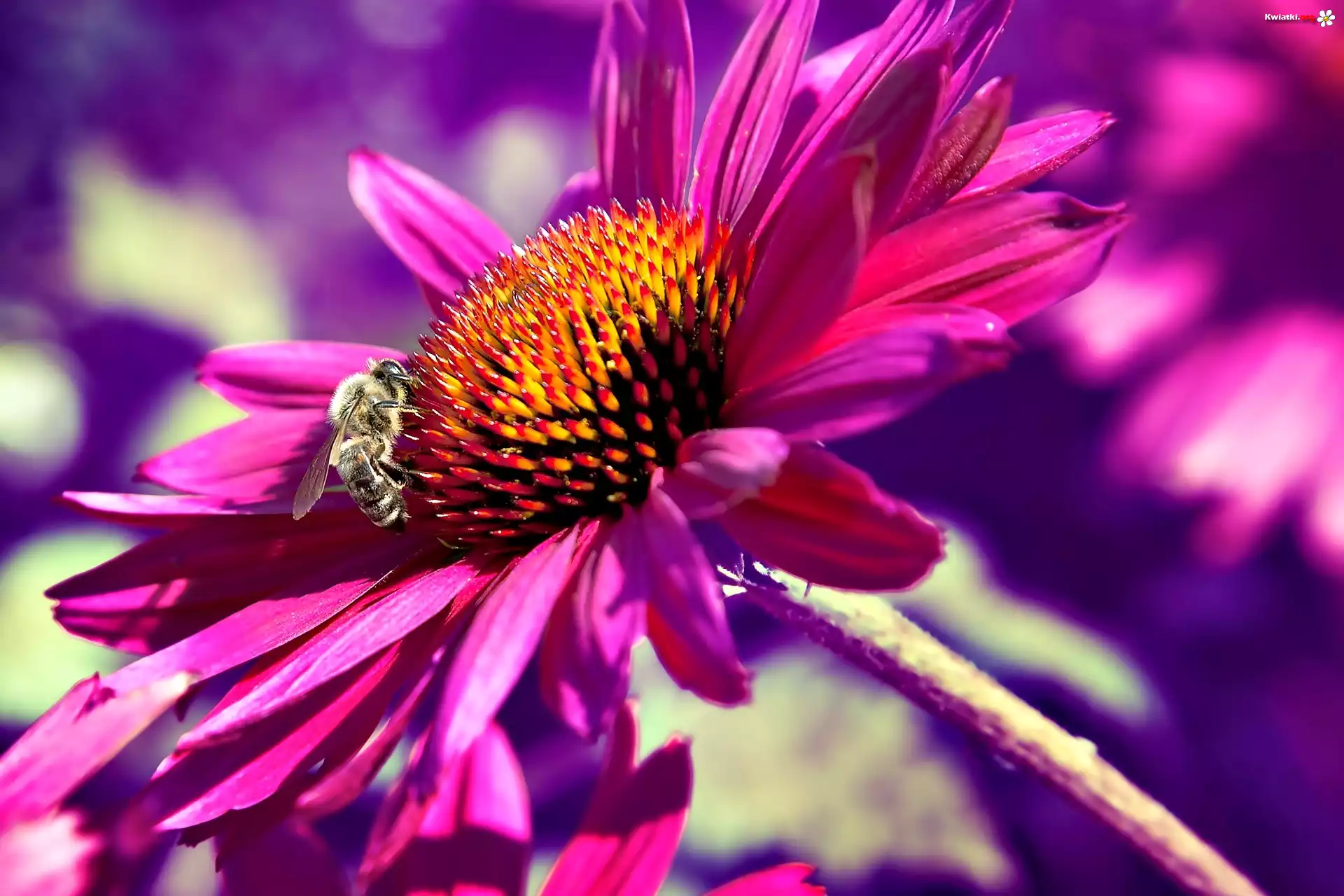 Różowy, Kwiat, Jeżówka, Pszczoła - Zdjęcia