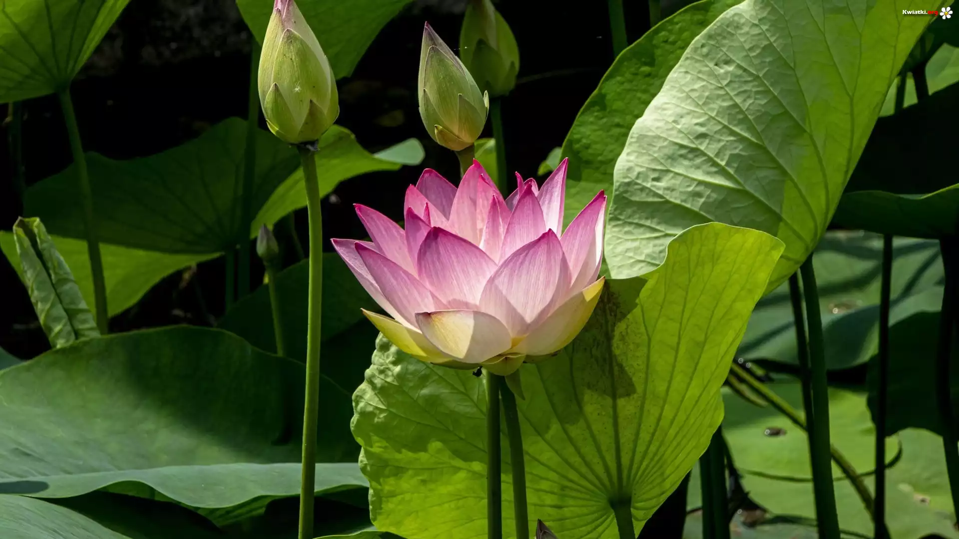 Kwiat Różowy, Lotos, Zielone, Liście, Pąki