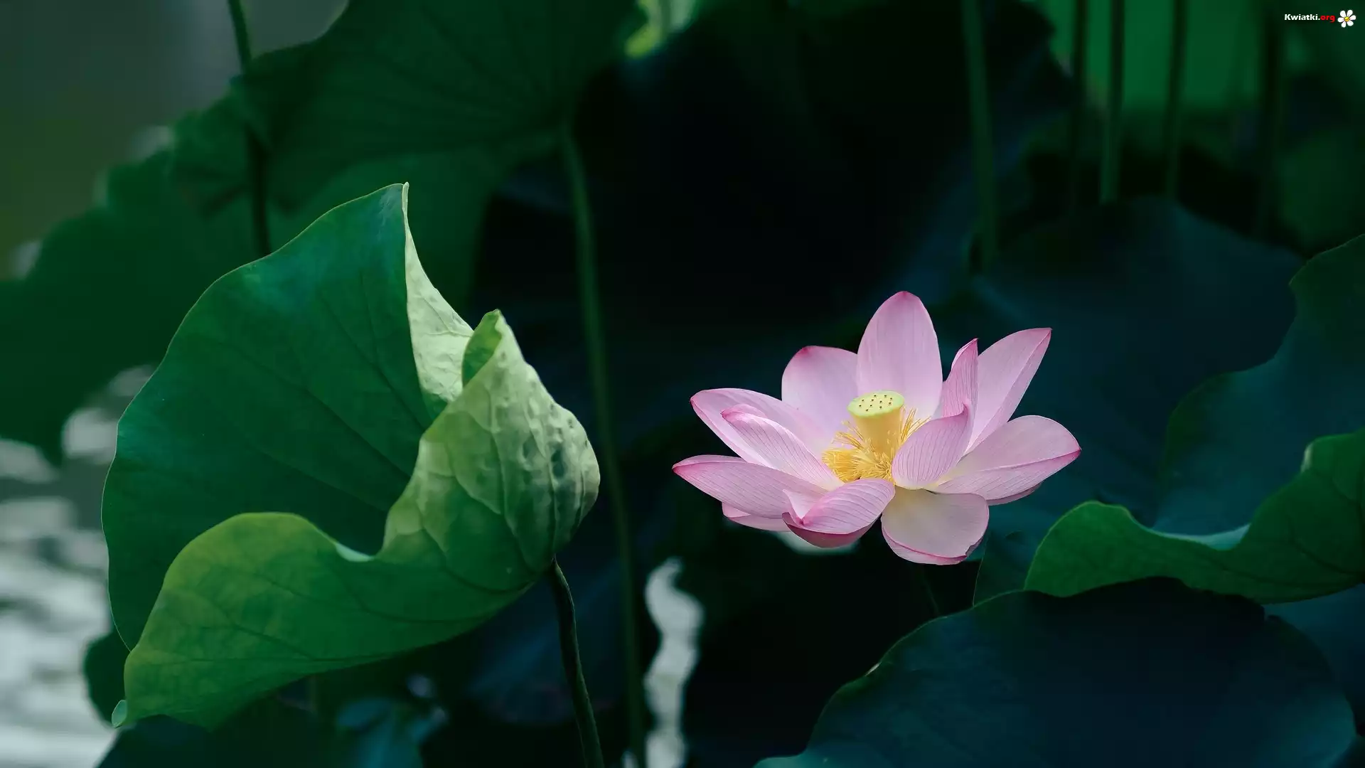 Różowy, Lotos, Zielone, Liście - Zdjęcia