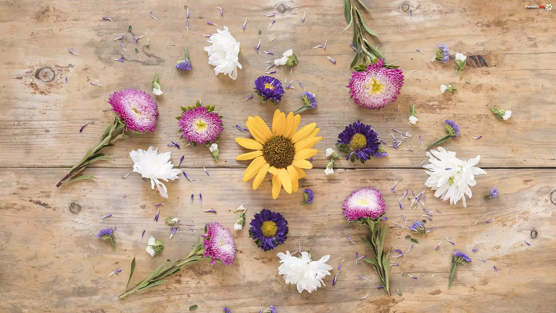Kwiat Rozrzucone, Kwiaty, Astry, Deski