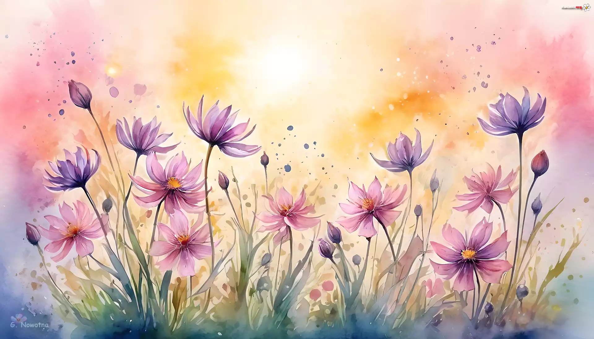 Fioletowe, Różowe, Kwiaty, Rozświetlone, Tło, Grafika - Zdjęcia