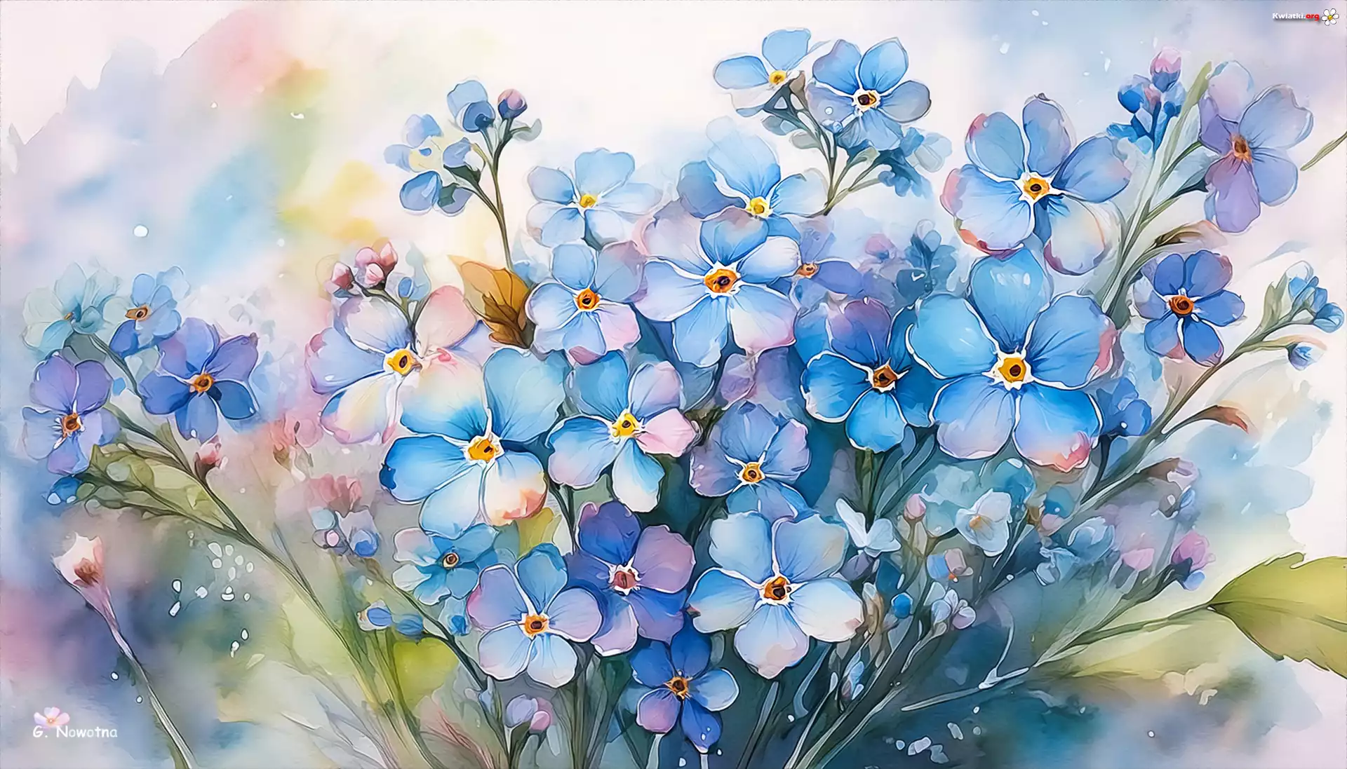 Niezapominajki, Niebieskie, Kwiaty, Rozświetlone, Tło, Grafika - Zdjęcia