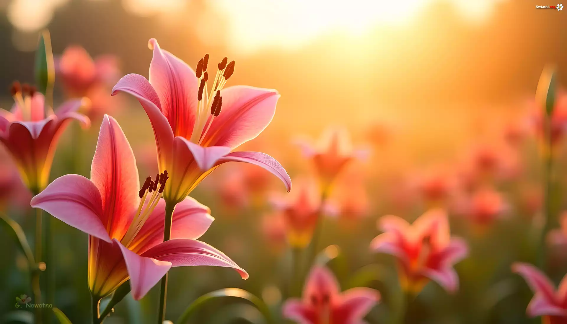 Różowe, Lilie, Kwiaty, Rozświetlone, Tło, Grafika - Zdjęcia