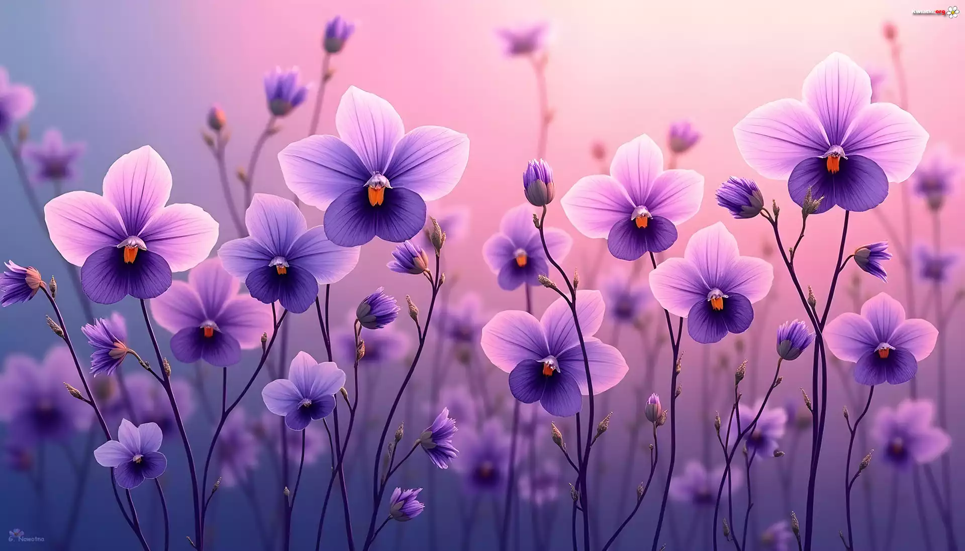 Fioletowe, Rozświetlone, Kwiaty, Grafika AI - Zdjęcia
