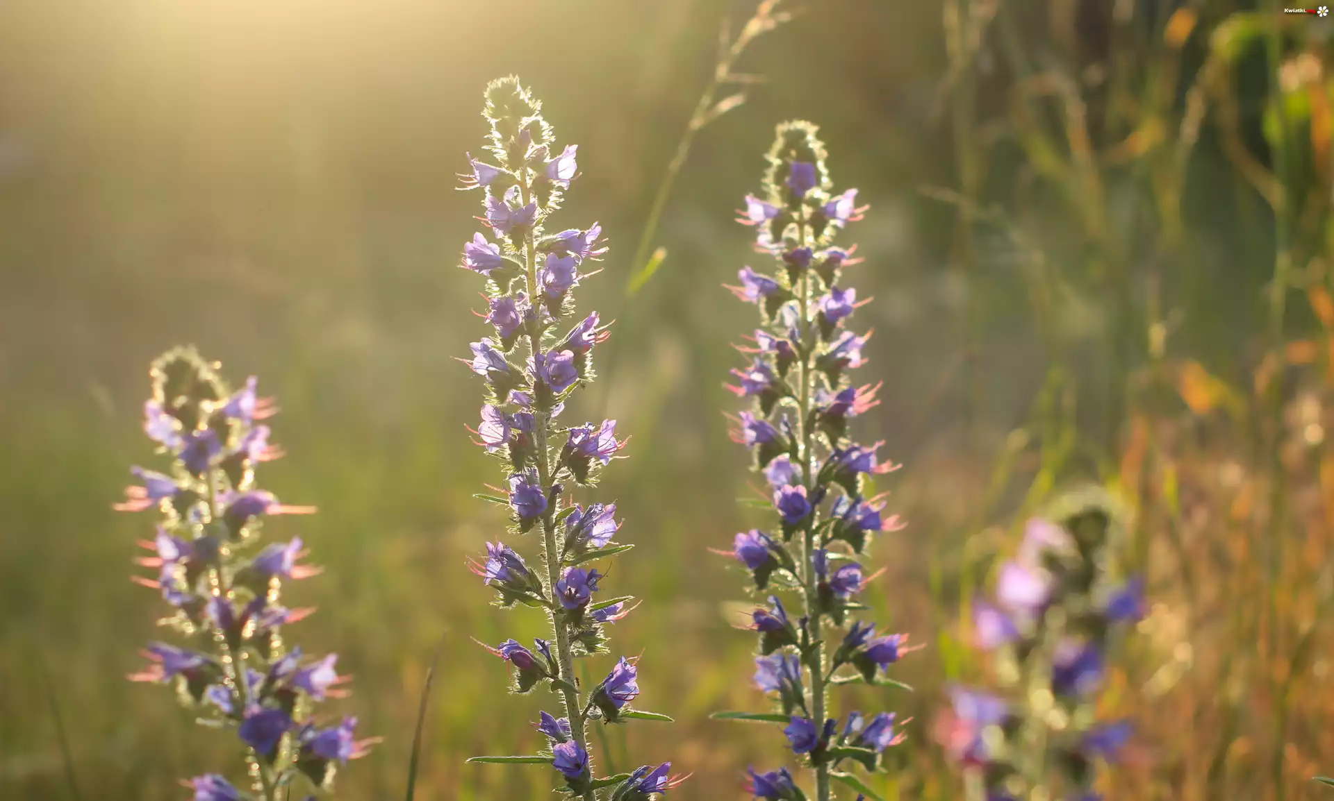 Kwiat Niebieskie, Kwiaty, Polne, Rozświetlone
