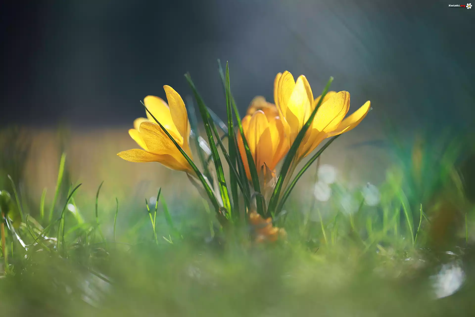 Żółte, Krokusy, Kwiaty, Rozświetlone - Zdjęcia