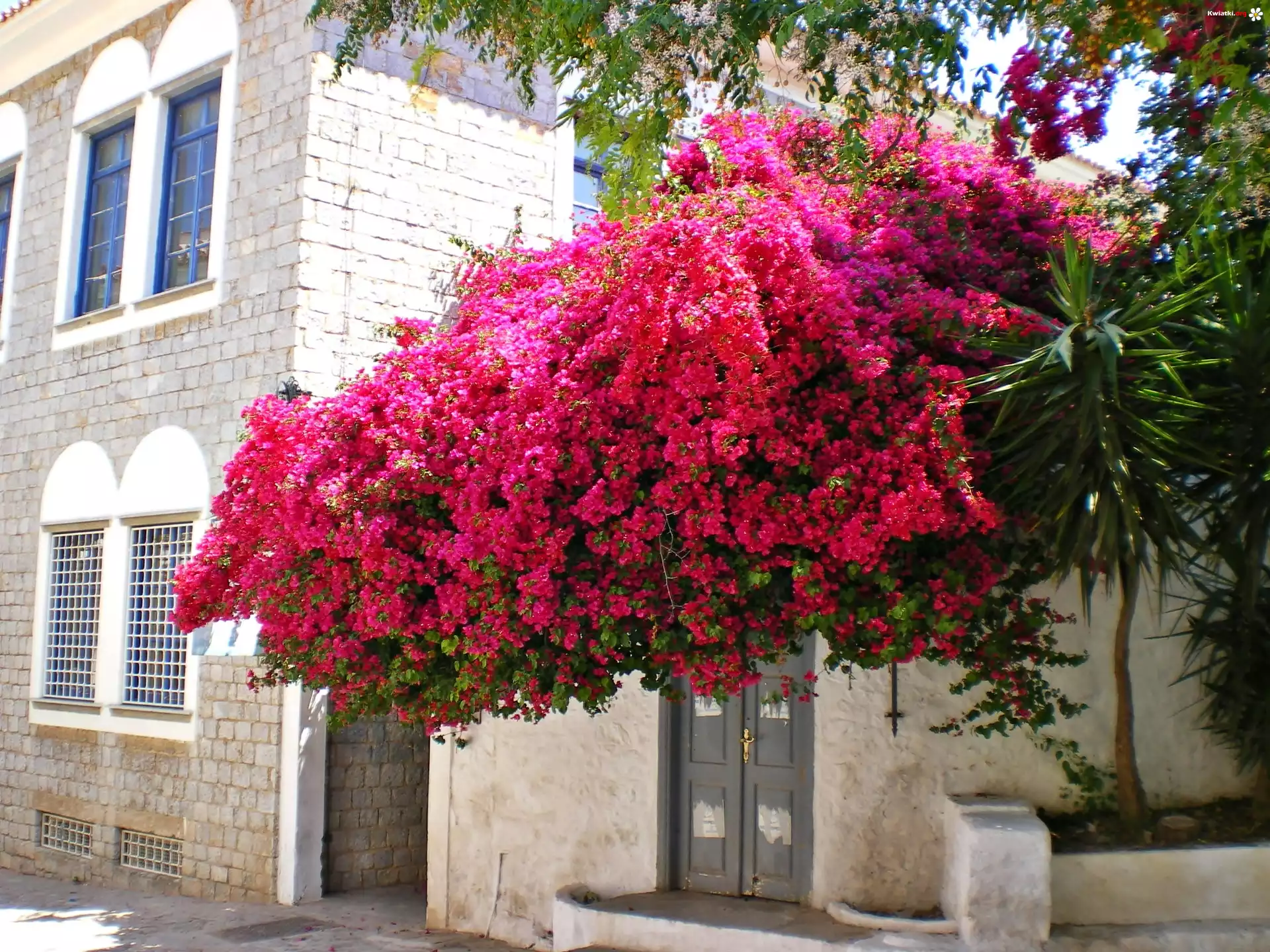 Kwiat Rozświetlony, Dom, Ogród, Kwitnąca, Bugenwilla