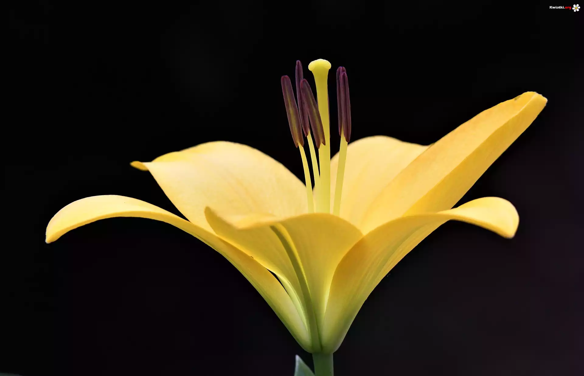 Kwiat Żółta, Rozwinięta, Lilia, Ciemne, Tło