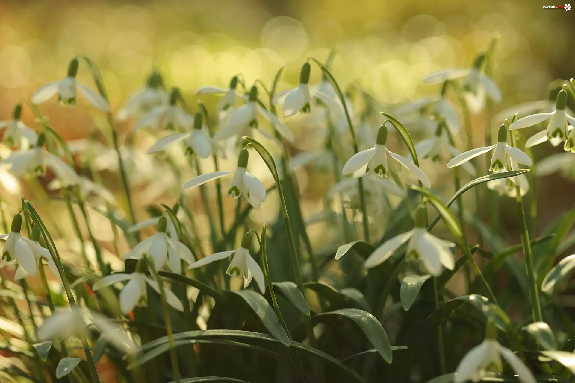 Rozwinięte, Białe, Kwiaty, Przebiśniegi - Zdjęcia