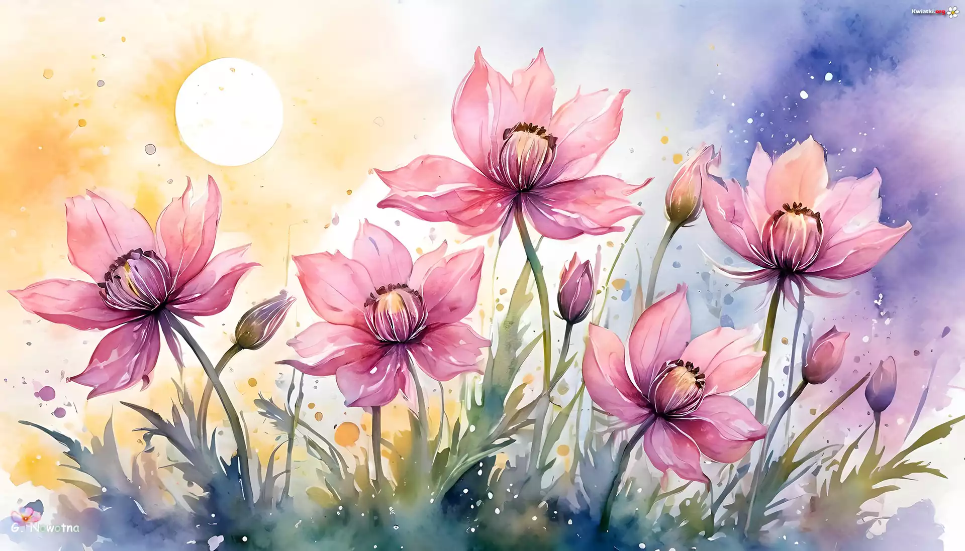 Różowe, Rozwinięte, Kwiaty, Słońce, Grafika - Zdjęcia