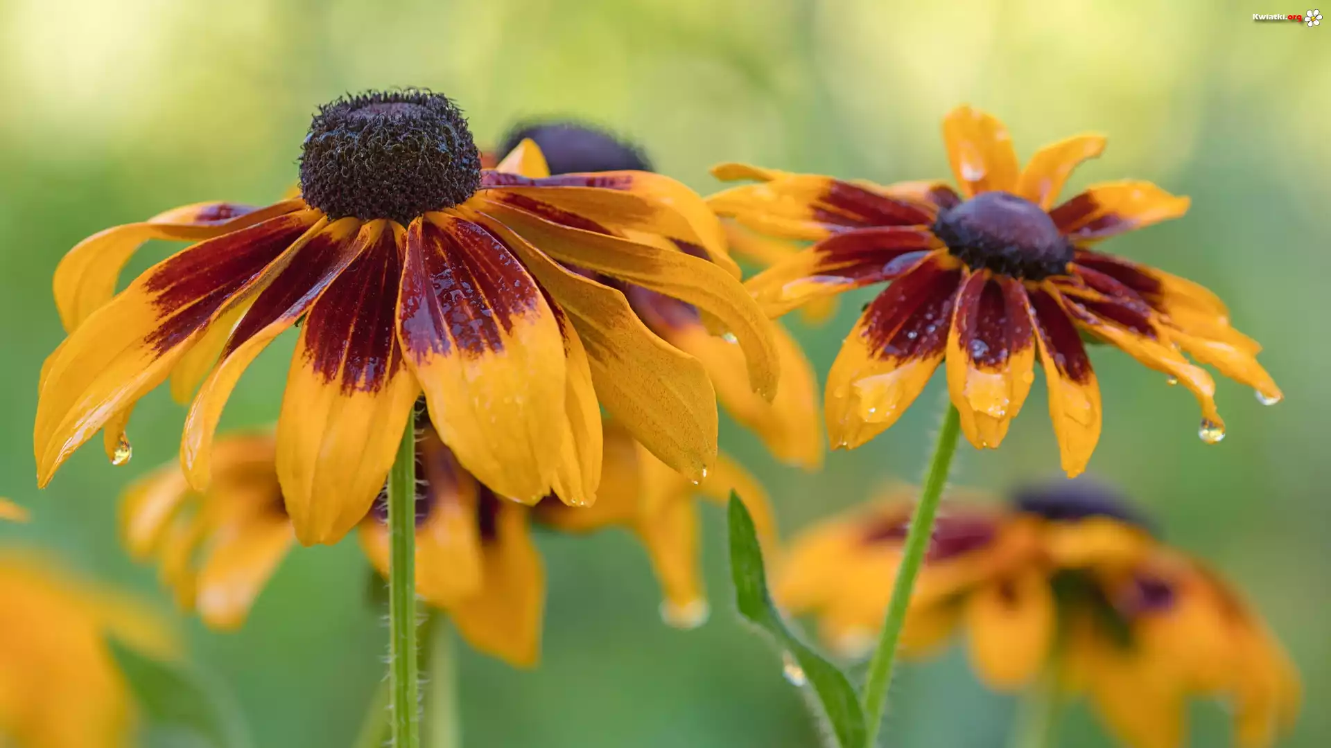 Żółte, Mokre, Kwiaty, Rudbekia, Zbliżenie - Zdjęcia