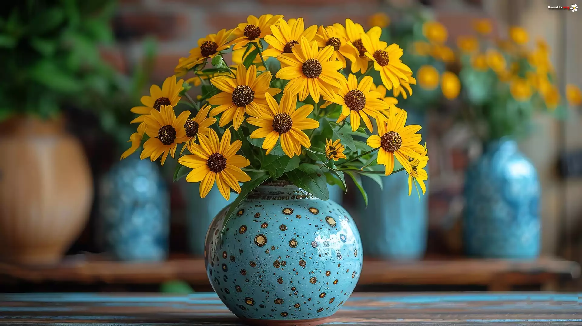 Bukiet, Żółte, Kwiaty, Rudbekia, Niebieski, Wazon - Zdjęcia