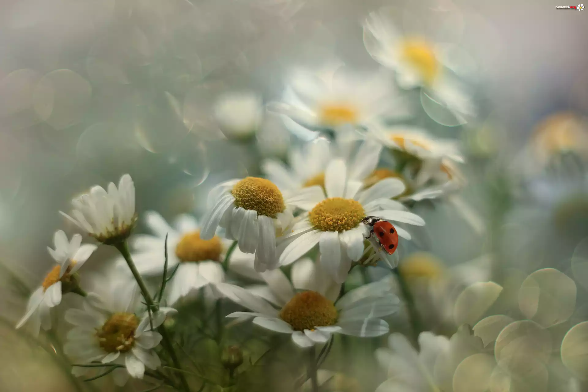 Kwiat Rumian polny, Biedronka, Kwiaty, Owad