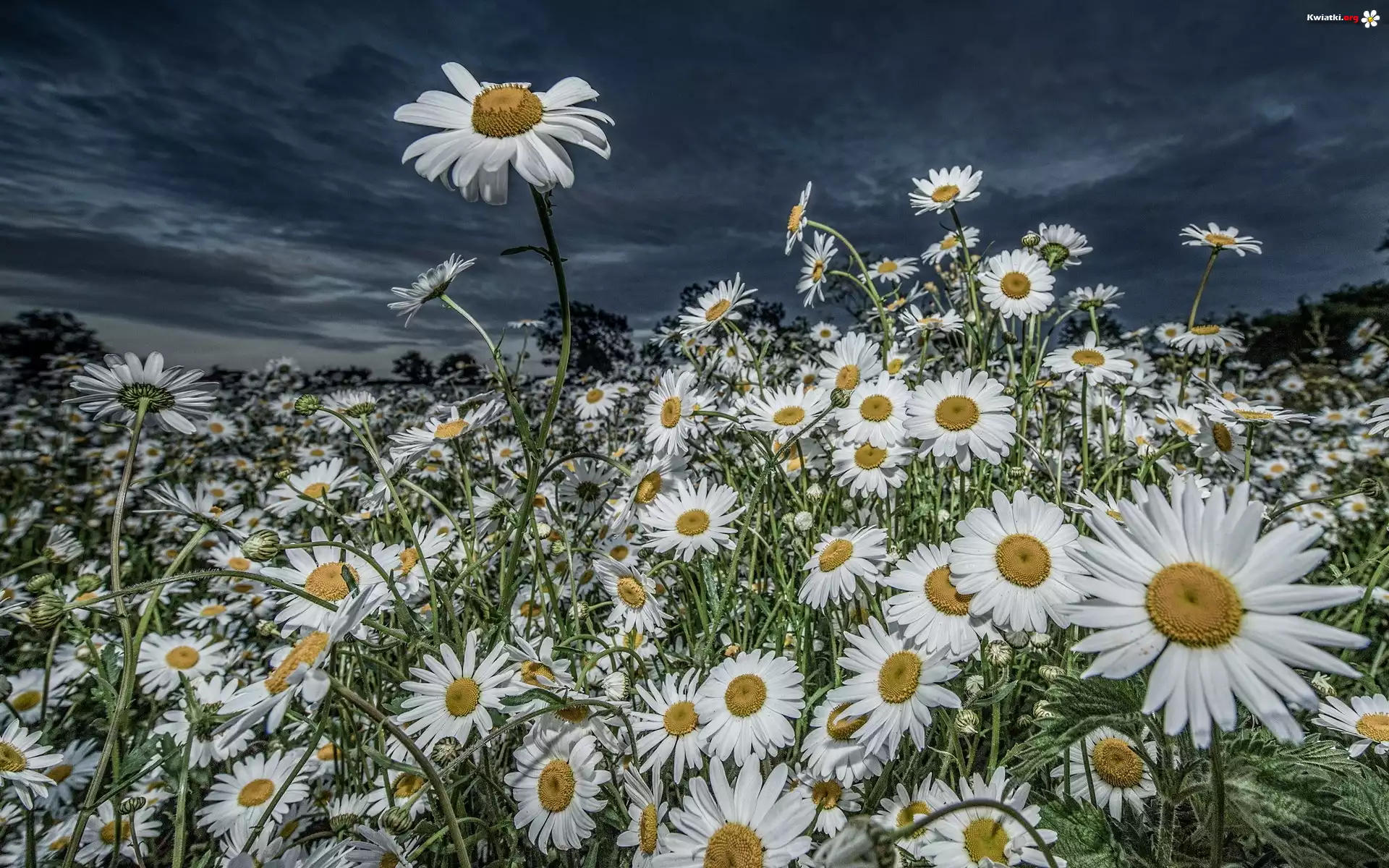 Kwiaty, Rumianek, Niebo - Zdjęcia