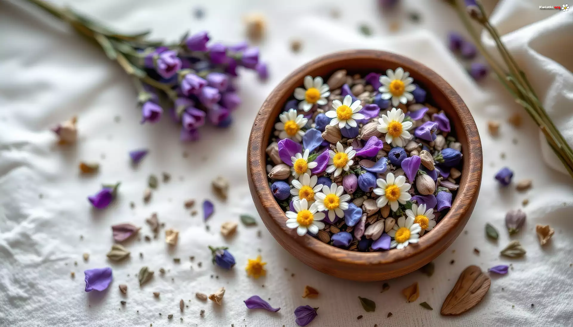 Lawenda, Rumianek, Płatki, Kwiaty, Miska - Zdjęcia