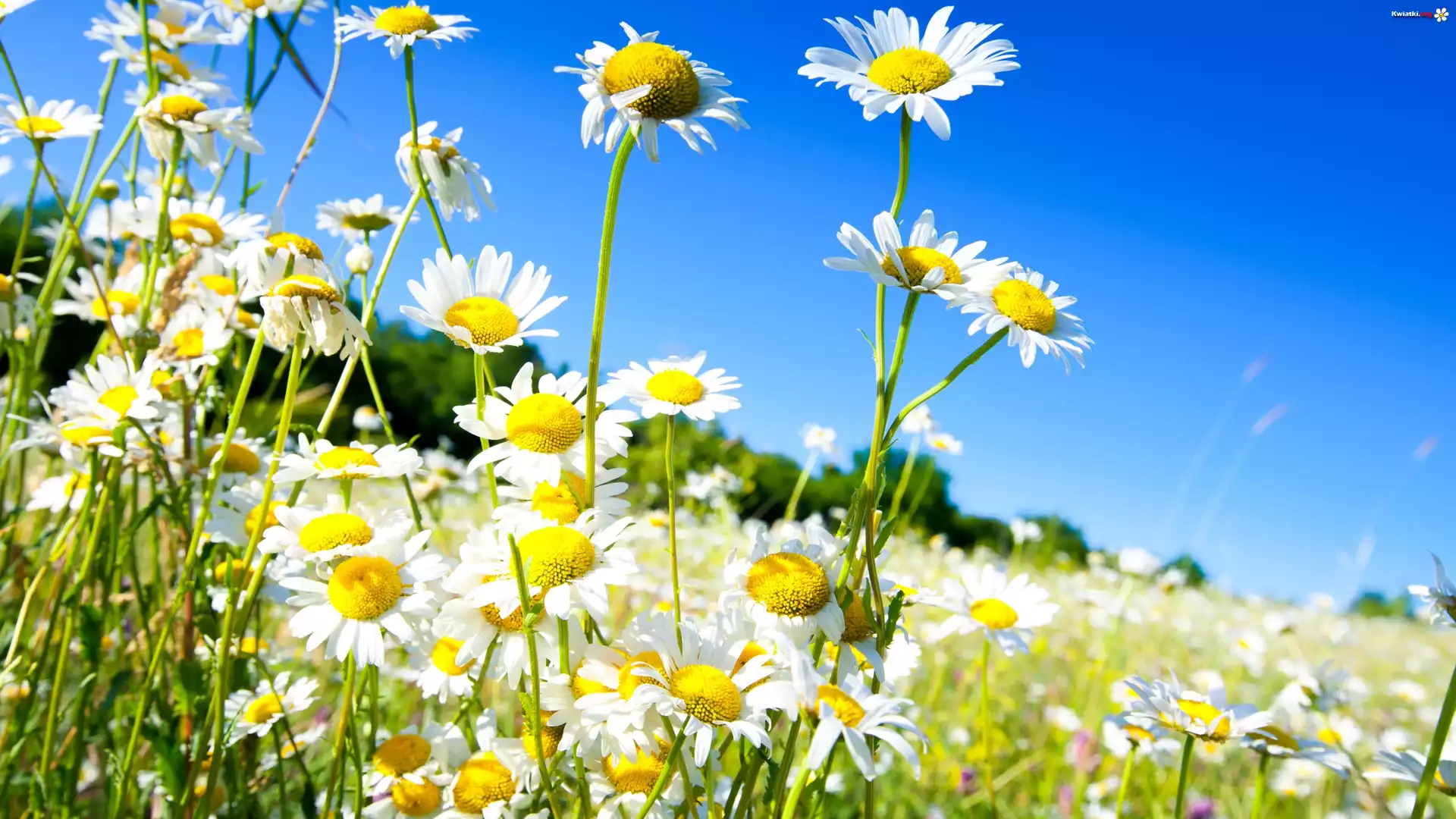 Kwiat Łąka, Kwiaty, Rumianki, Niebo