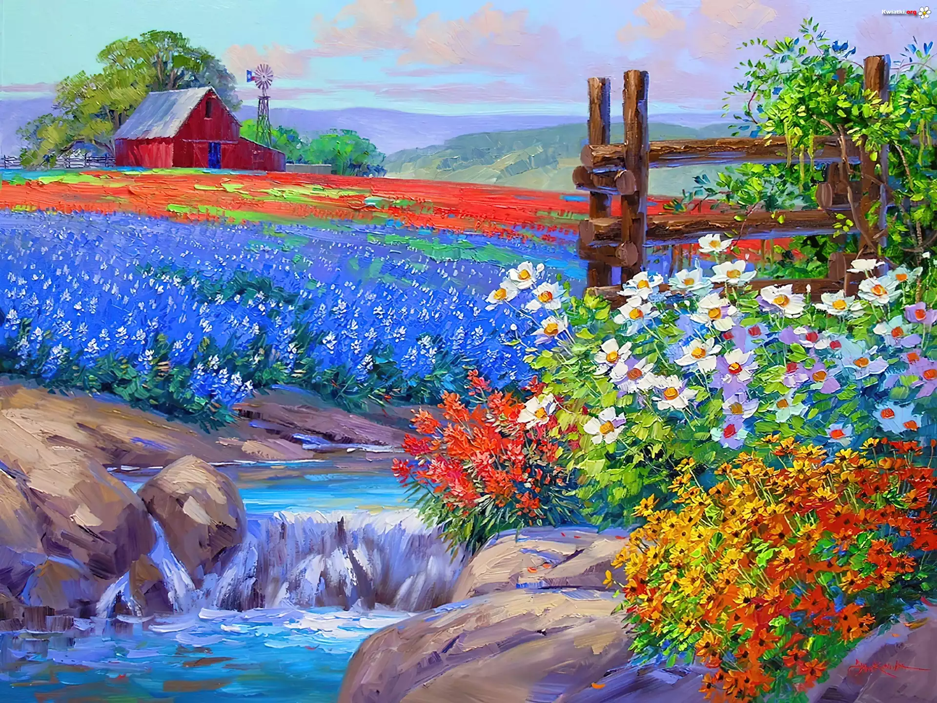 Łąka, Rzeczka, Kwiaty - Zdjęcia