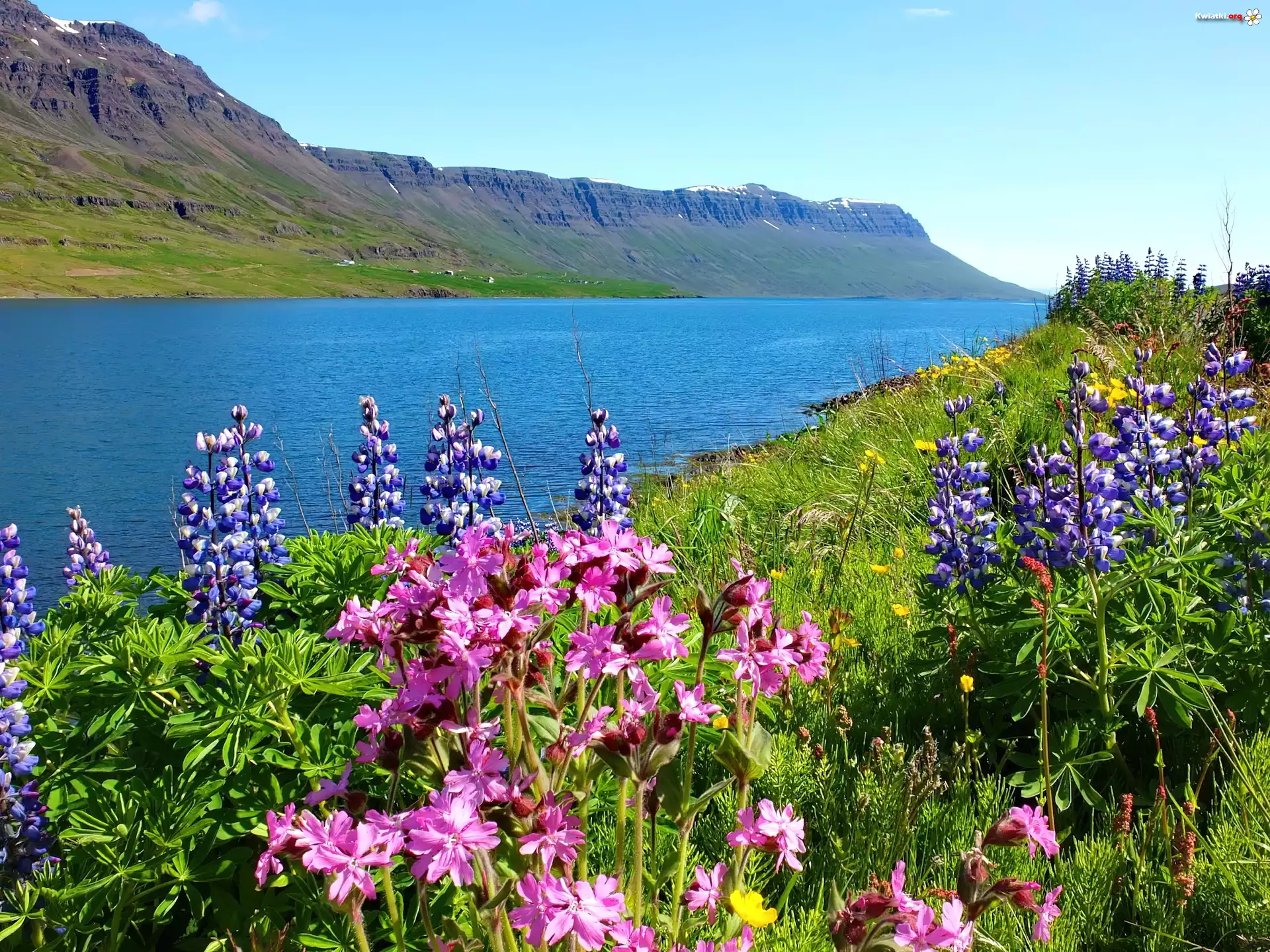 Łąka, Kwiaty, Rzeka, Góry - Zdjęcia