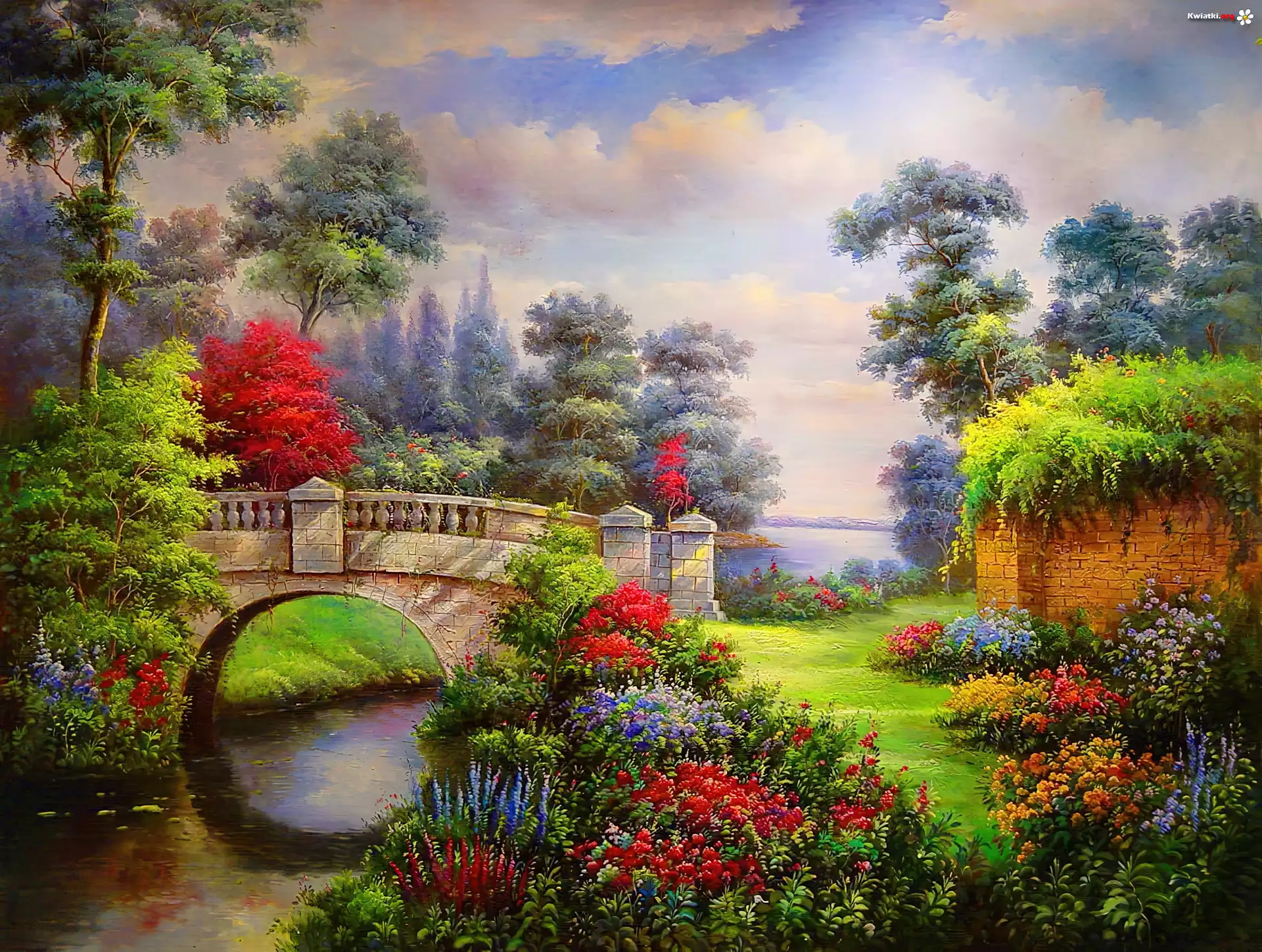 Most, Rzeka, Kwiaty - Zdjęcia