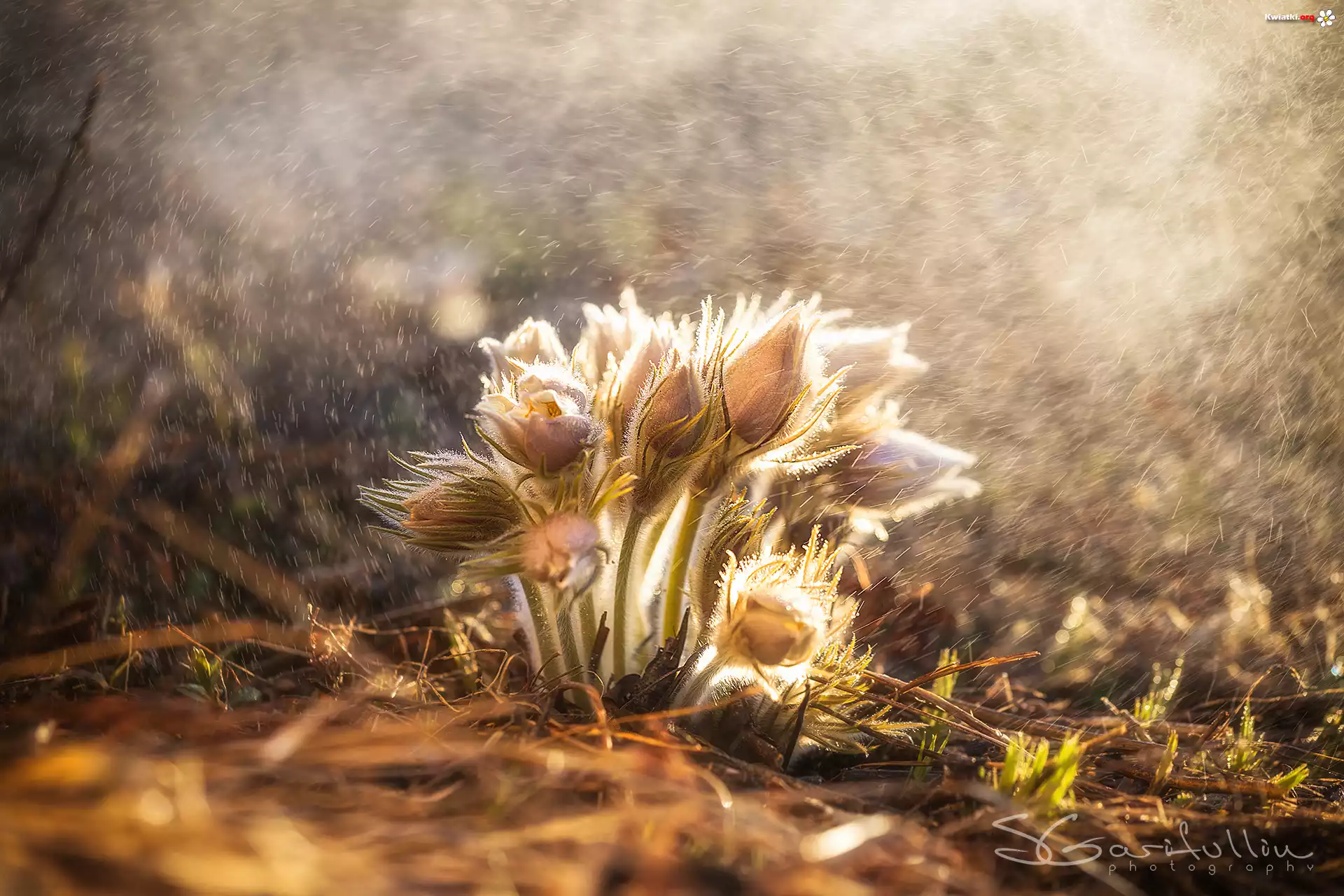 Sasanki, Krople, Deszcz, Rozmycie - Zdjęcia