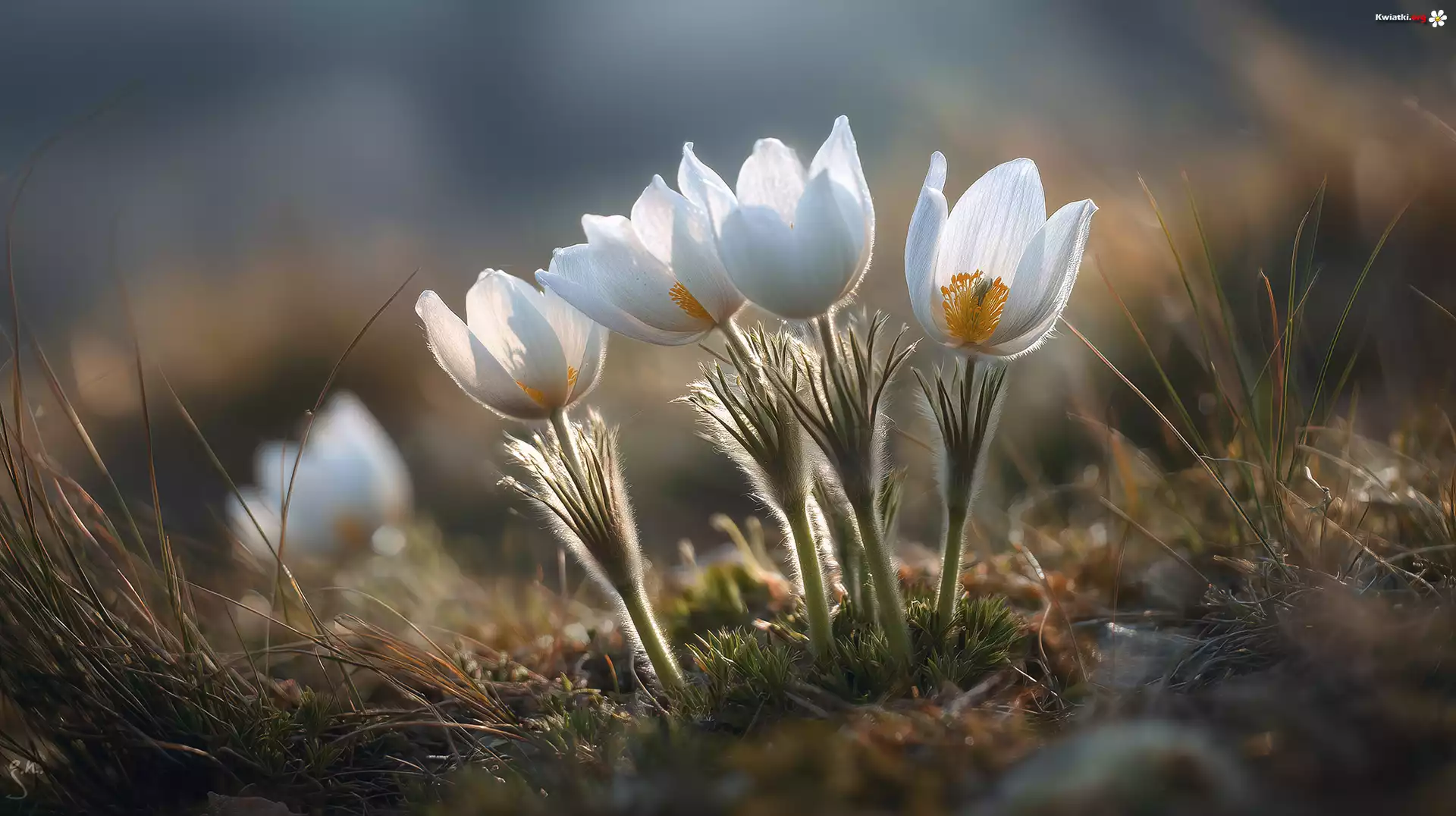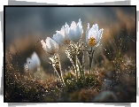 Kwiat Białe, Sasanki, Kwiat, Grafika AI
